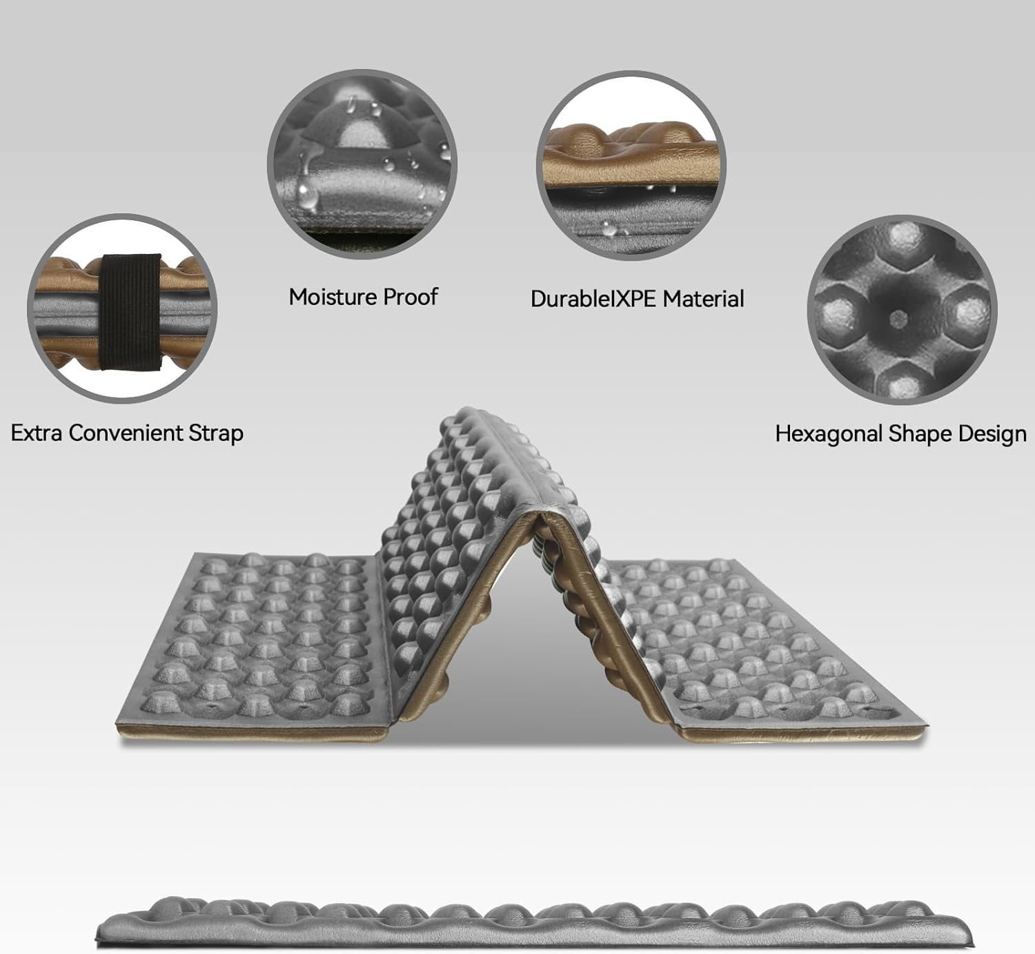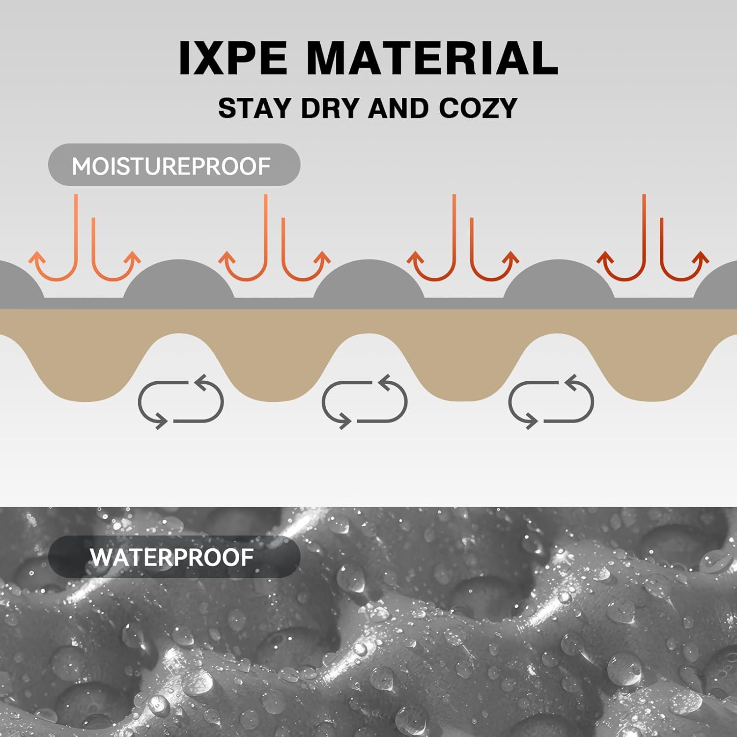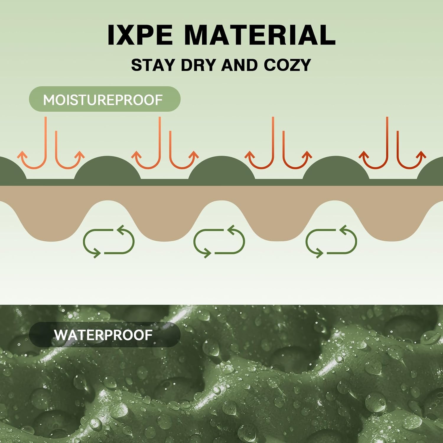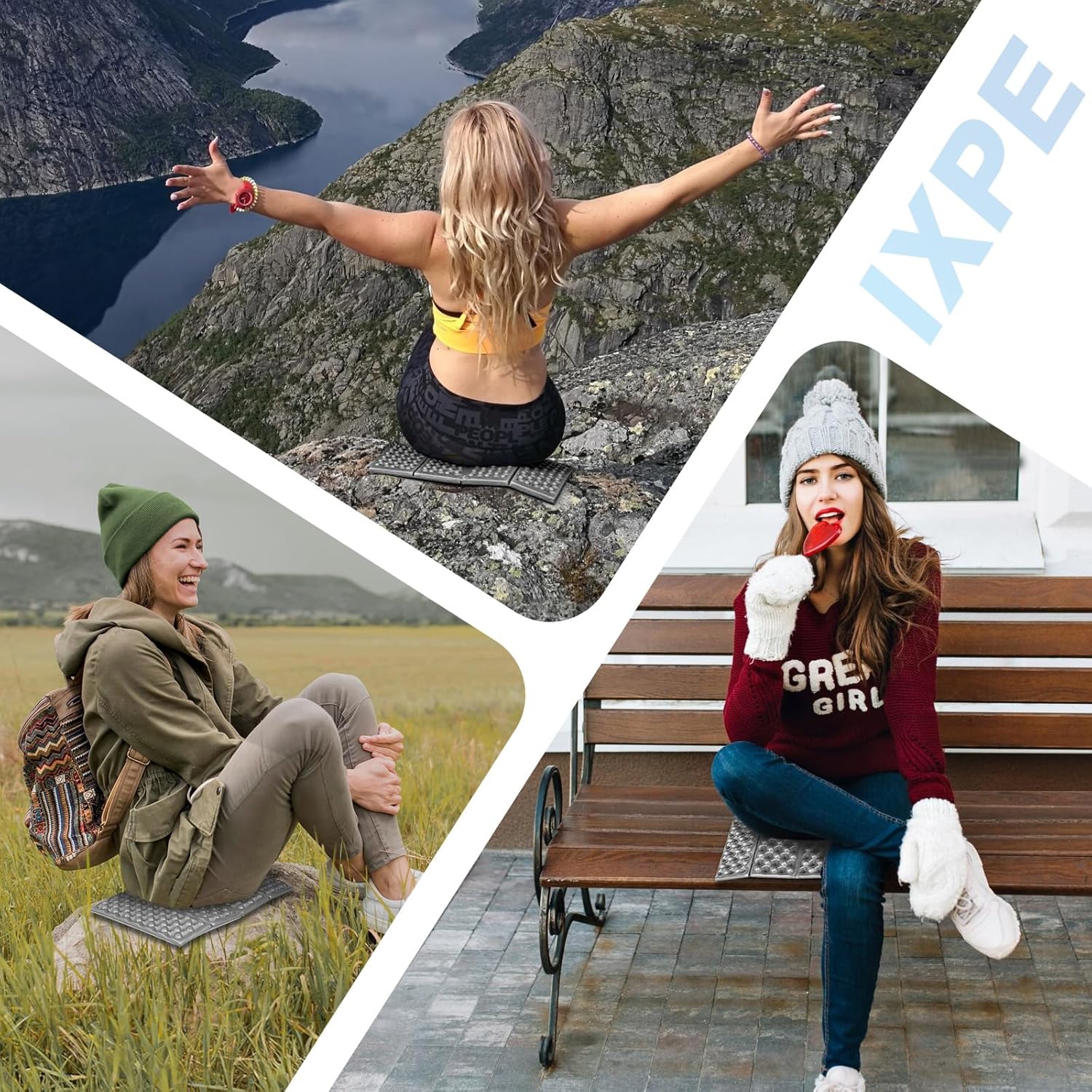 - 𝐈𝐗𝐏𝐄 𝐌𝐚𝐭𝐞𝐫𝐢𝐚:The foam camping sit pad is made of IXPE material, which is moisture-proof, dependable, and an economical option for sitting on the ground.