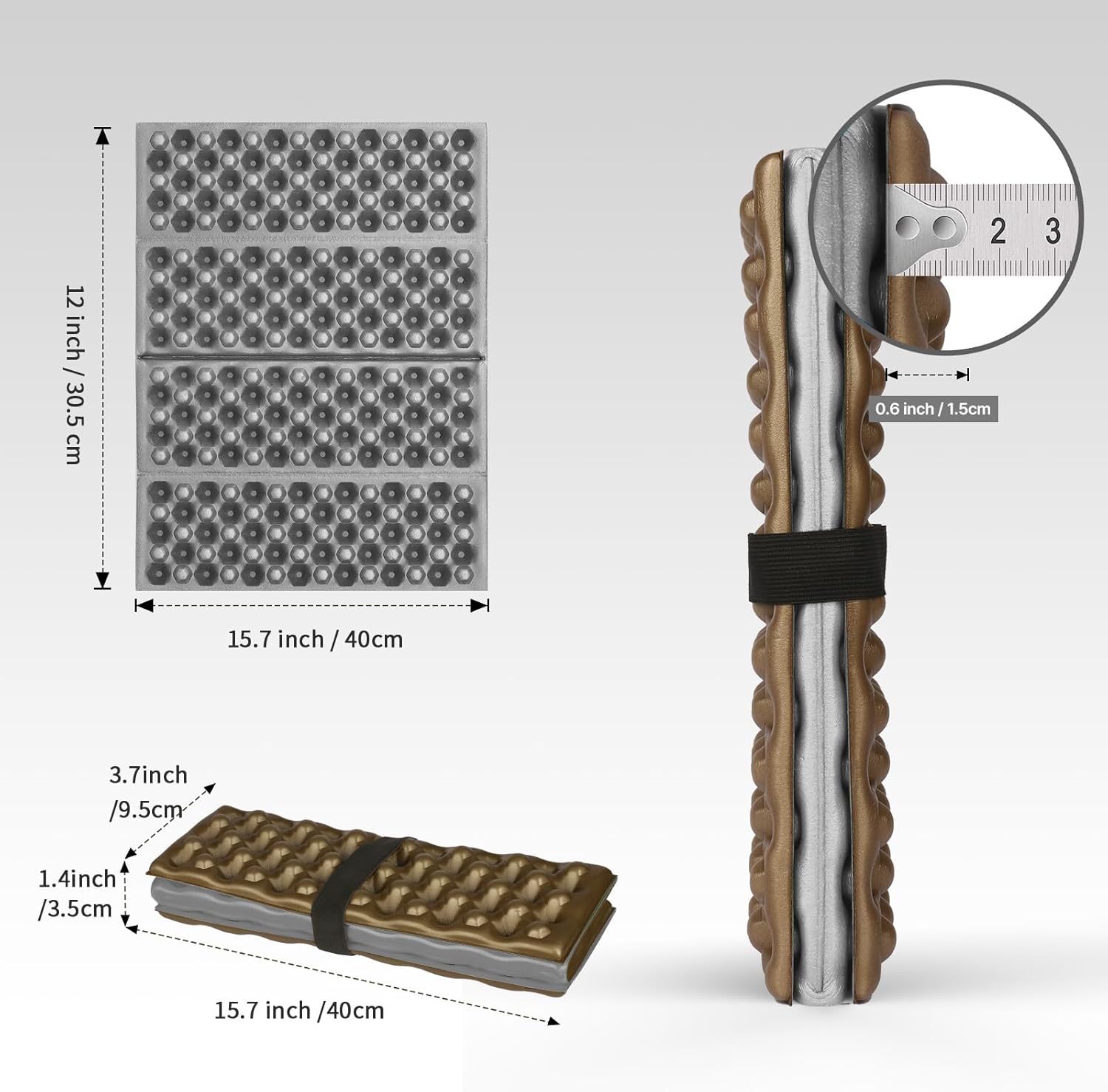 - 𝐏𝐨𝐫𝐭𝐚𝐛𝐥𝐞 𝐒𝐢𝐳𝐞: The sitting pad open size is 15.7x12.0x0.6 inches, folded size is 15.7x3.7x1.4 inches, and weighs only 1.7oz. The foam seat cushion adopts a folding accordion-style structure, making it easy to carry when you go out.
