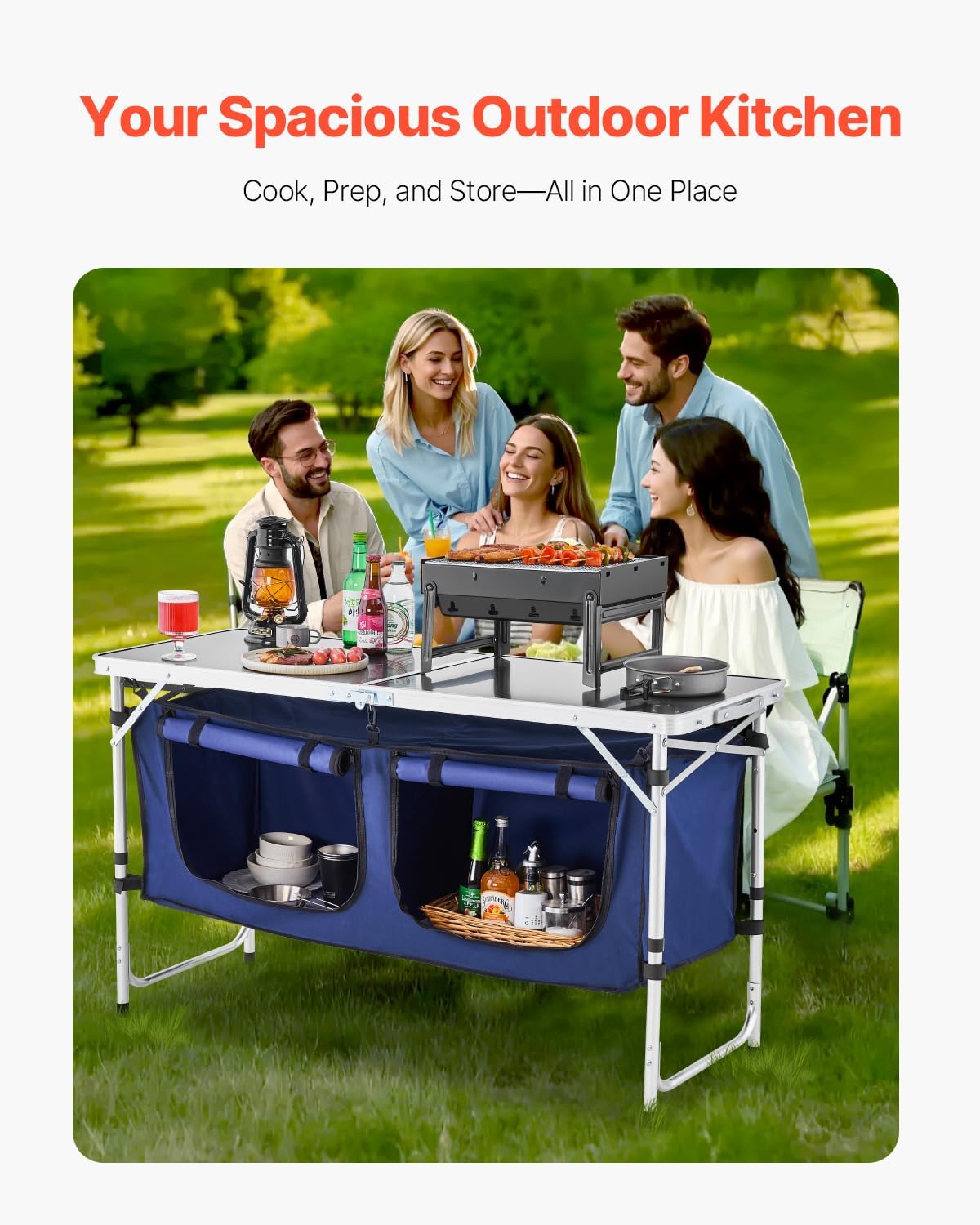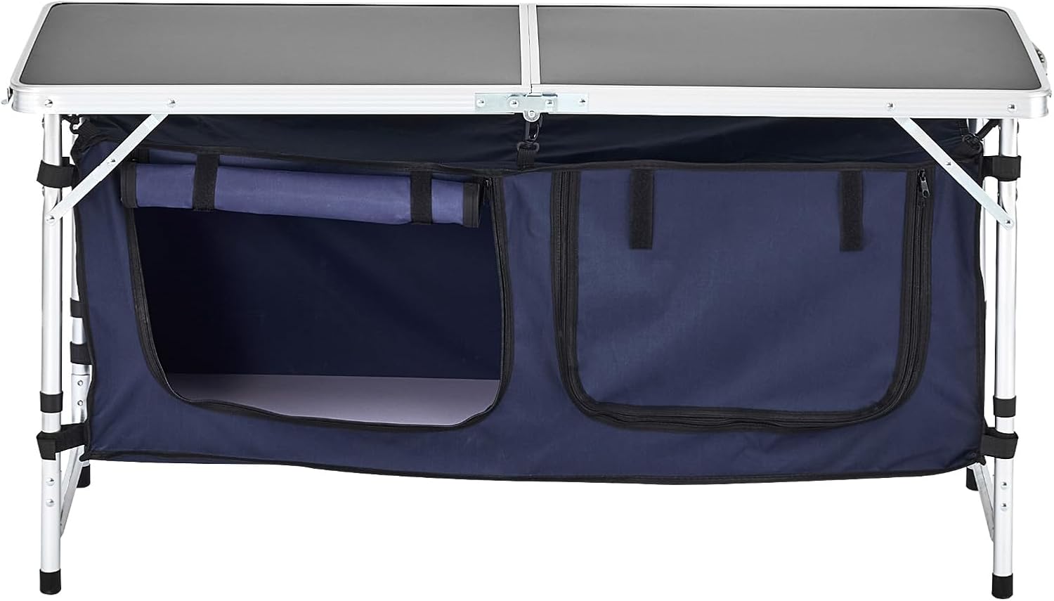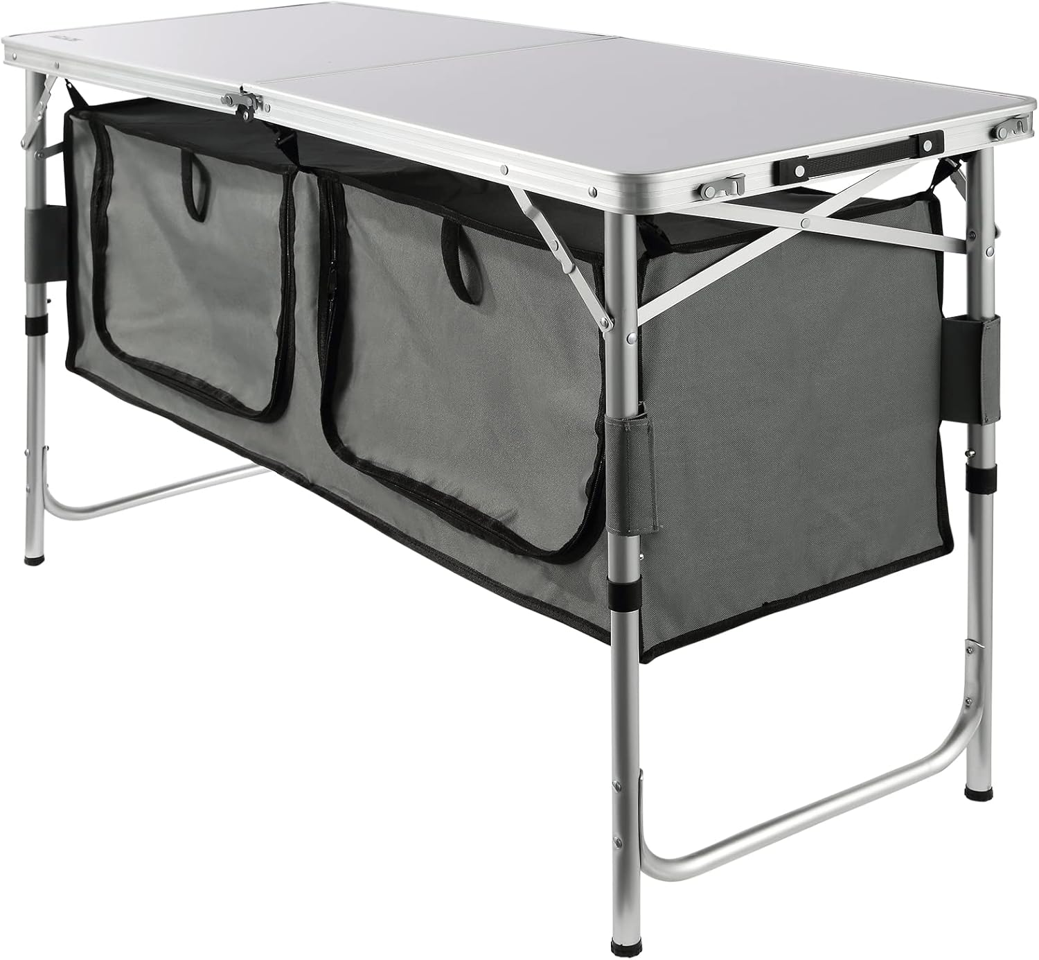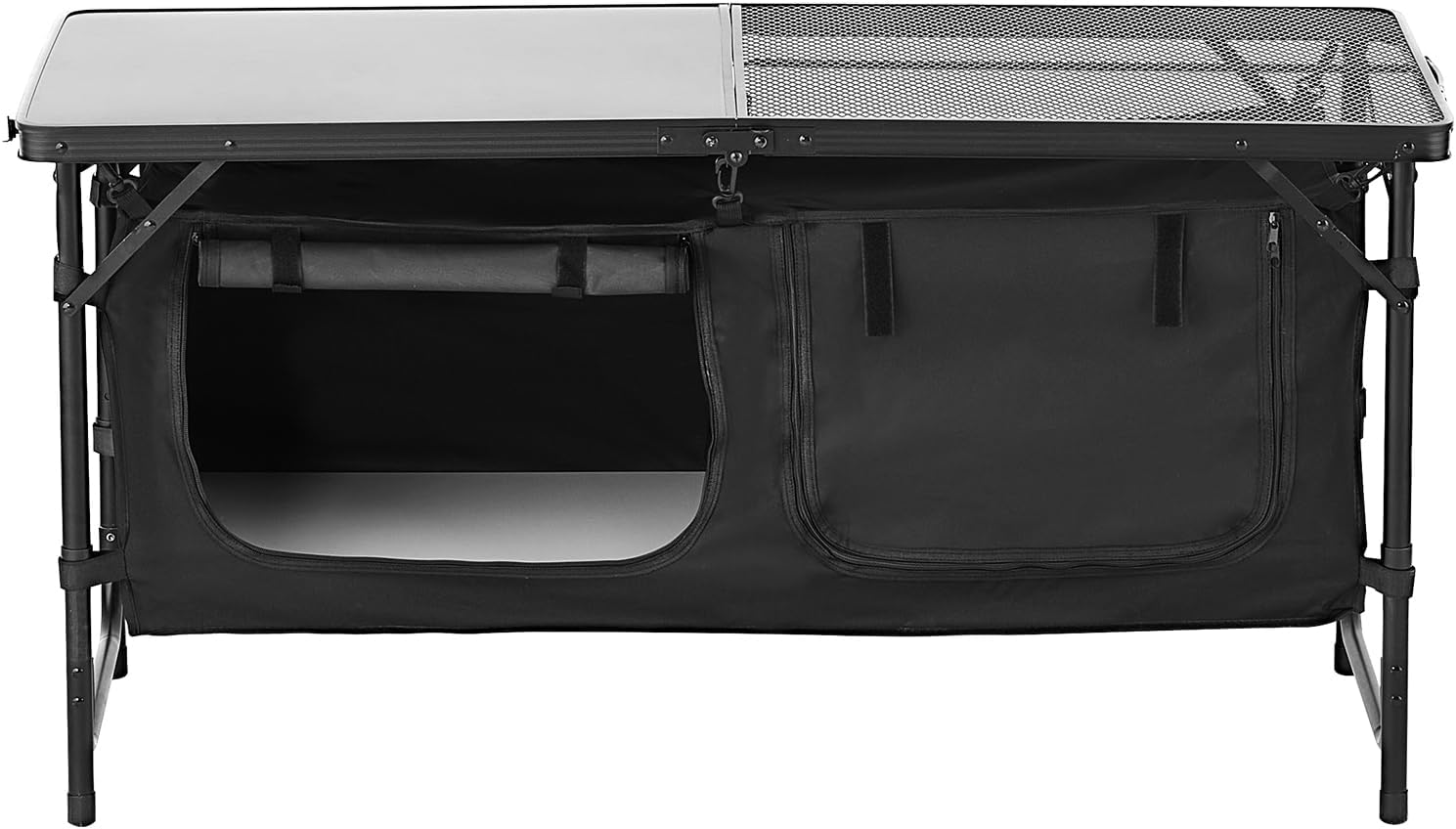 - Excellent Space Management: Designed for outdoor camping, the camp kitchen table features an aluminum tabletop, zippered storage compartments,side table, and storage shelf to keep stoves, grills, and cookware organized, along with cupholders to prevent spills