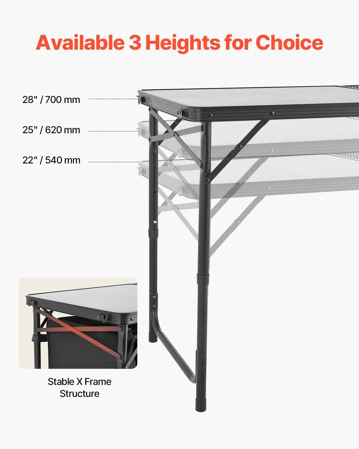 - Durable Quality: Constructed with aluminum tubes and a high-quality MDF countertop, this table is built for longevity, enhanced by a reinforced X-shaped structure that ensure easy cleanup