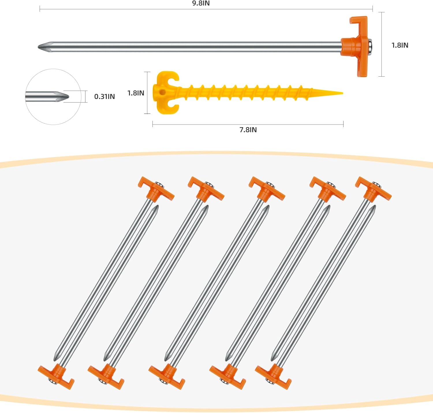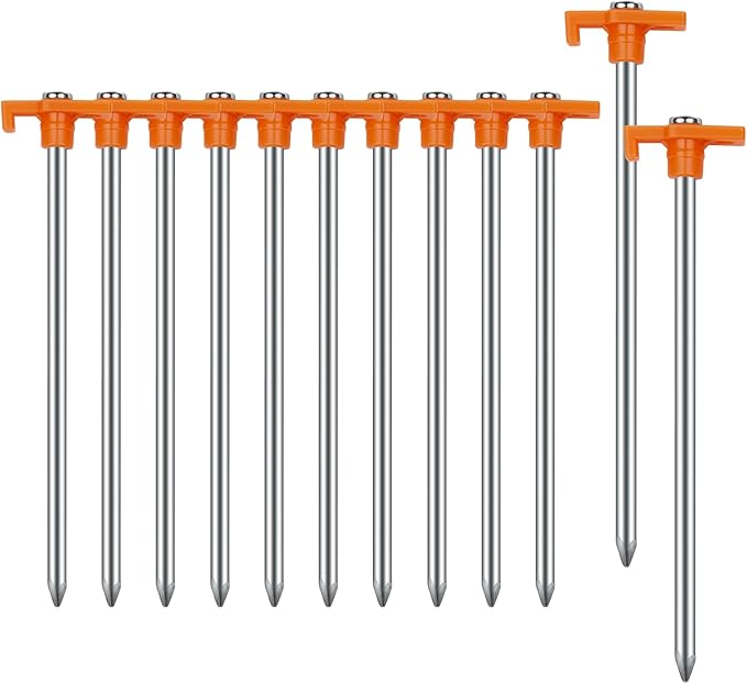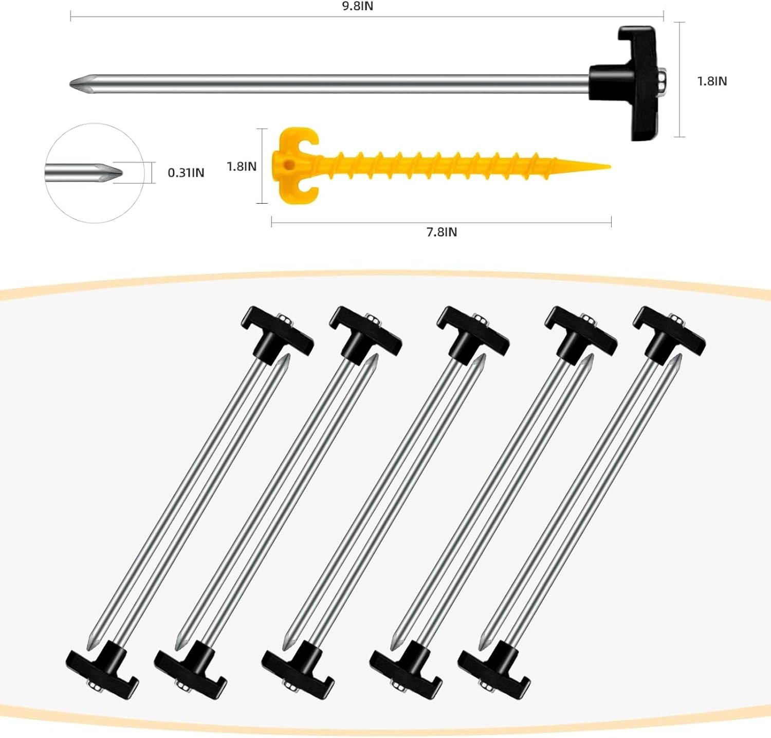 - SUITABLE FOR MULTIPLE SCENARIOS: In addition to being used to secure tents, canopies, tarps, rope racks, fences, awnings, and beach umbrellas, the nails can also be used to secure your child’s trampoline, support fixed plants, and secure Christmas giant balloon