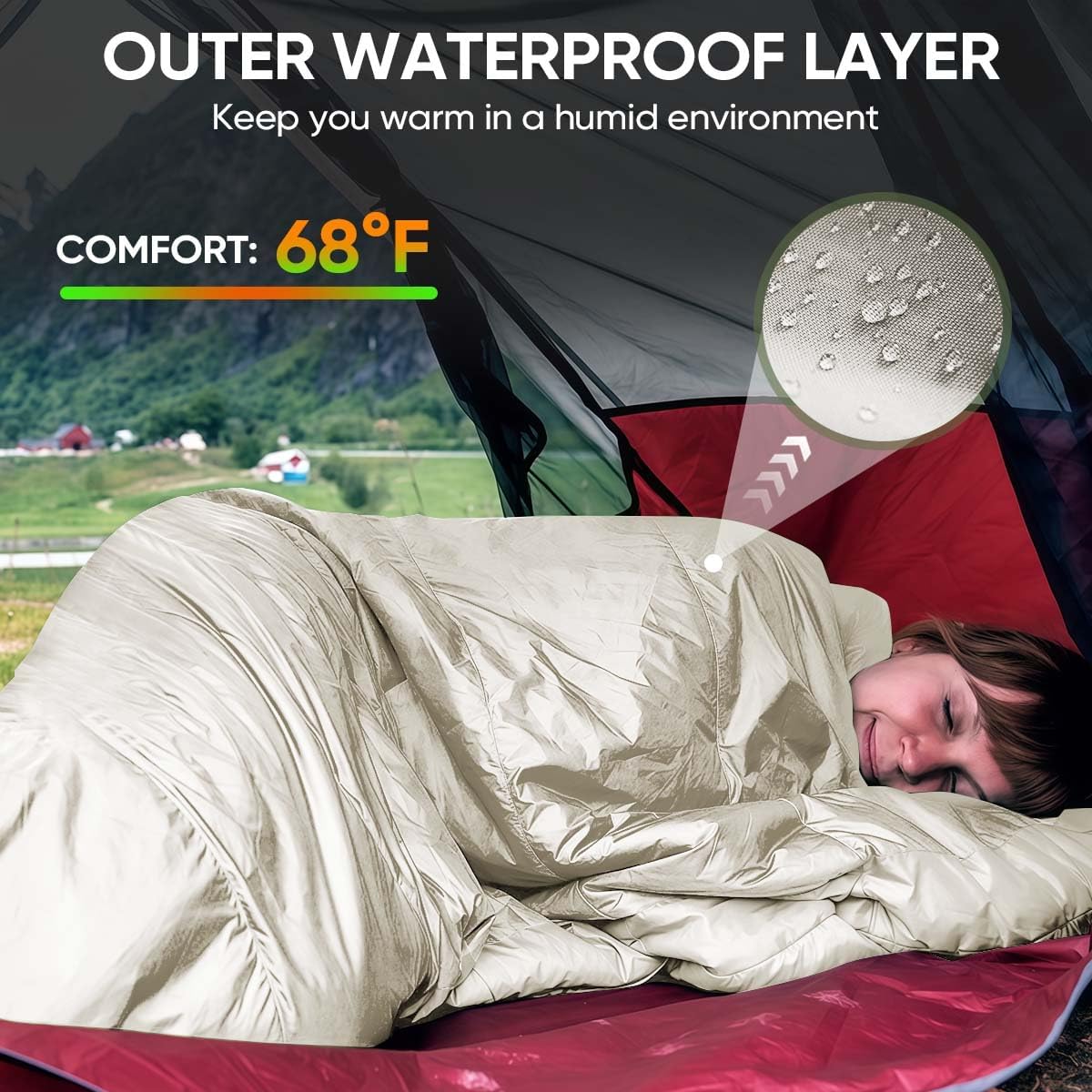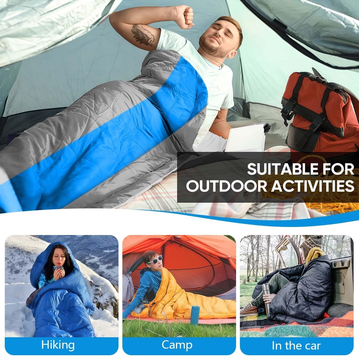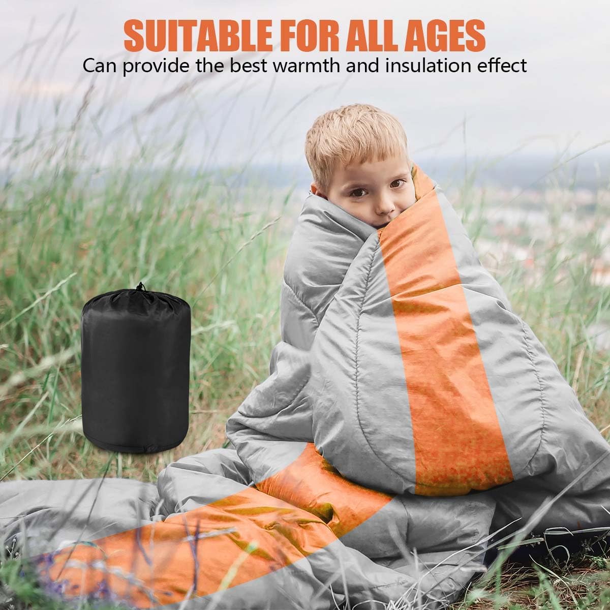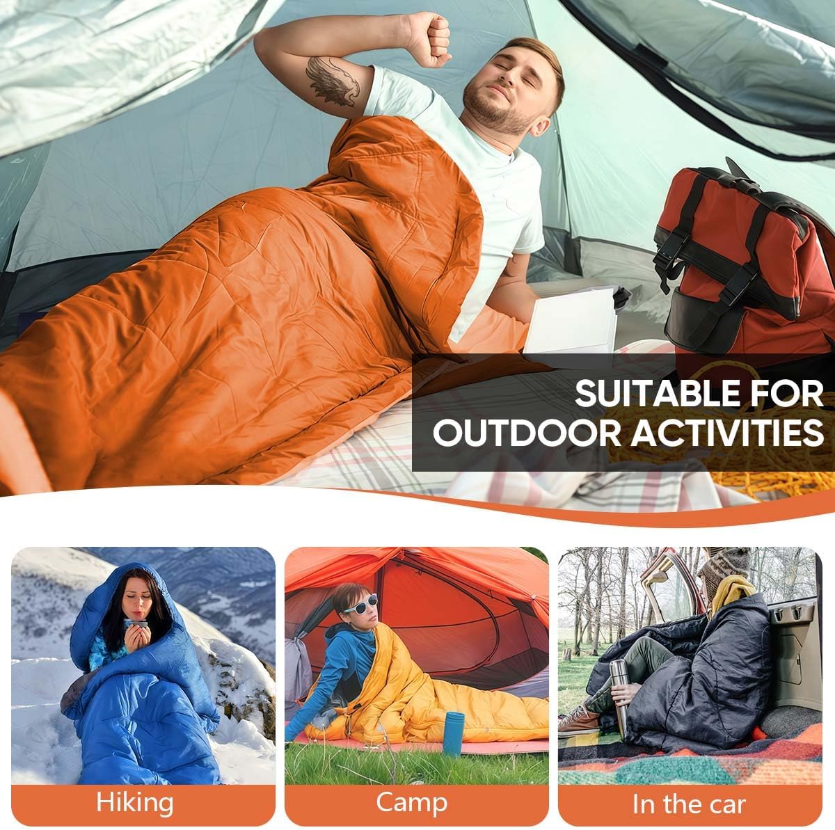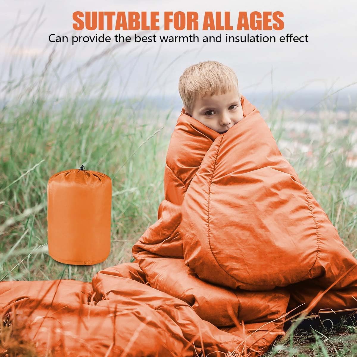 - Multifunctional in various occasions: convenient to carry and easy to store. It is suitable for all outdoor activities such as camping, hiking, backpacking, biking and even survival. It can keep you warm even under extreme conditions. These bags are not only suitable for cold environments, but even for warm weather.