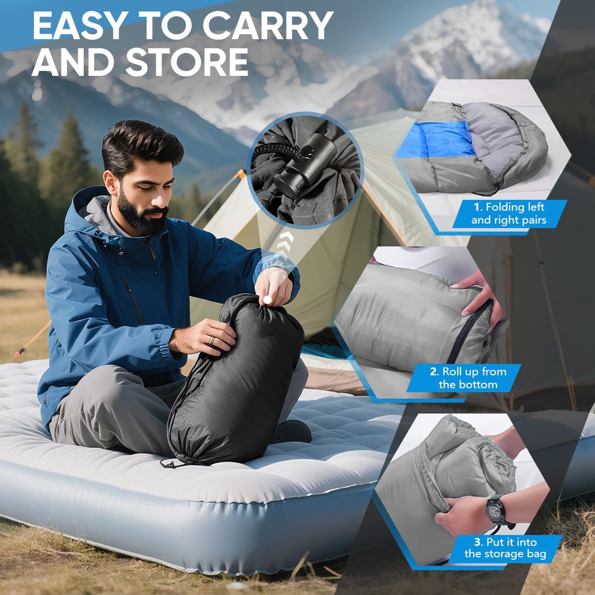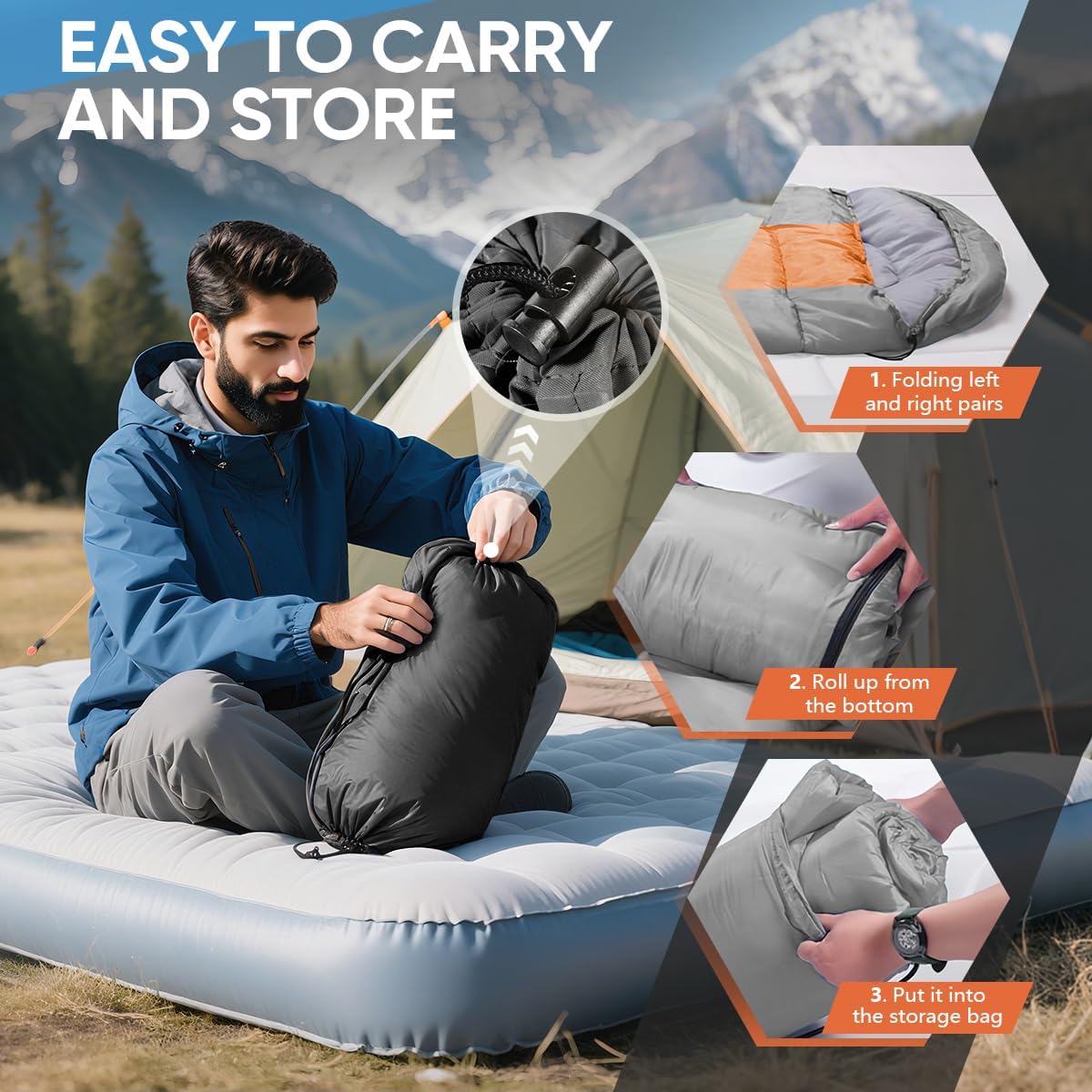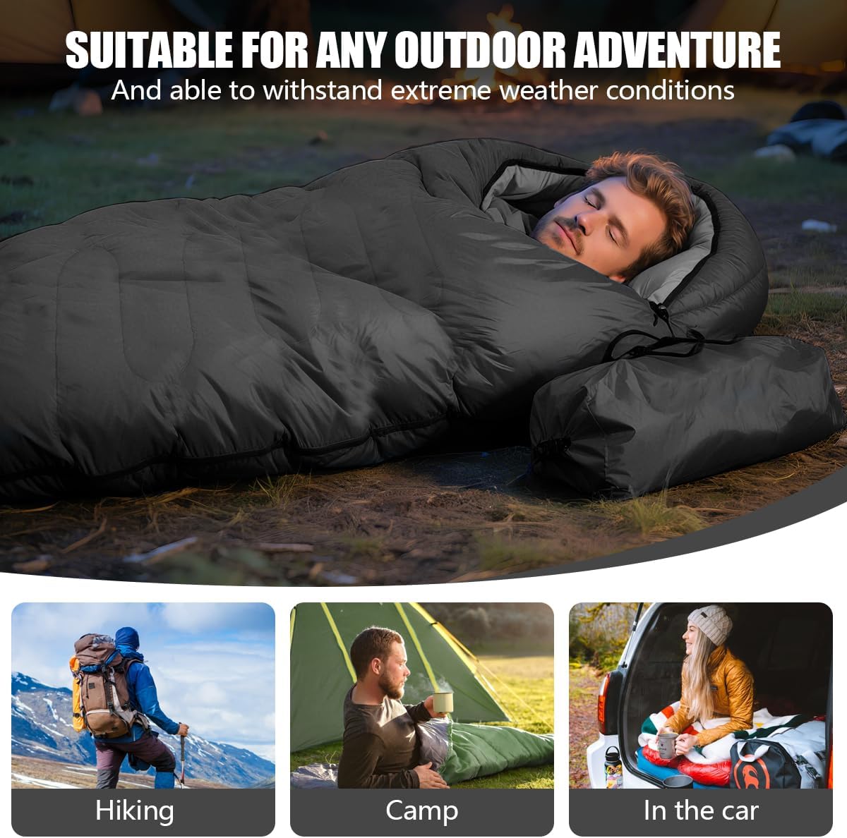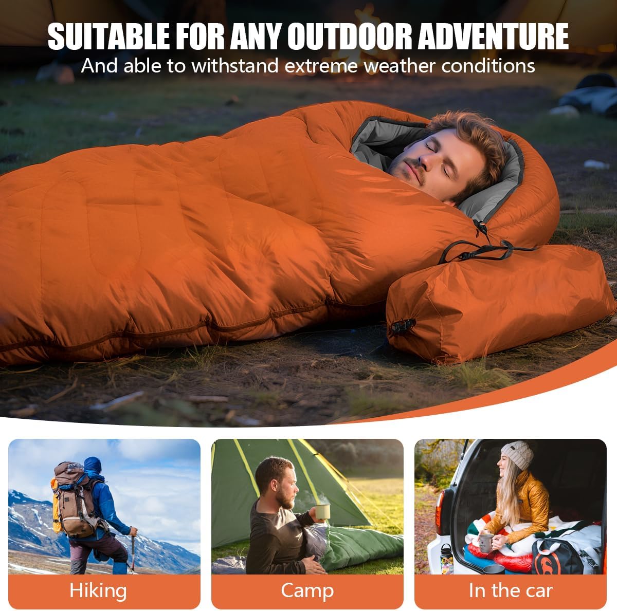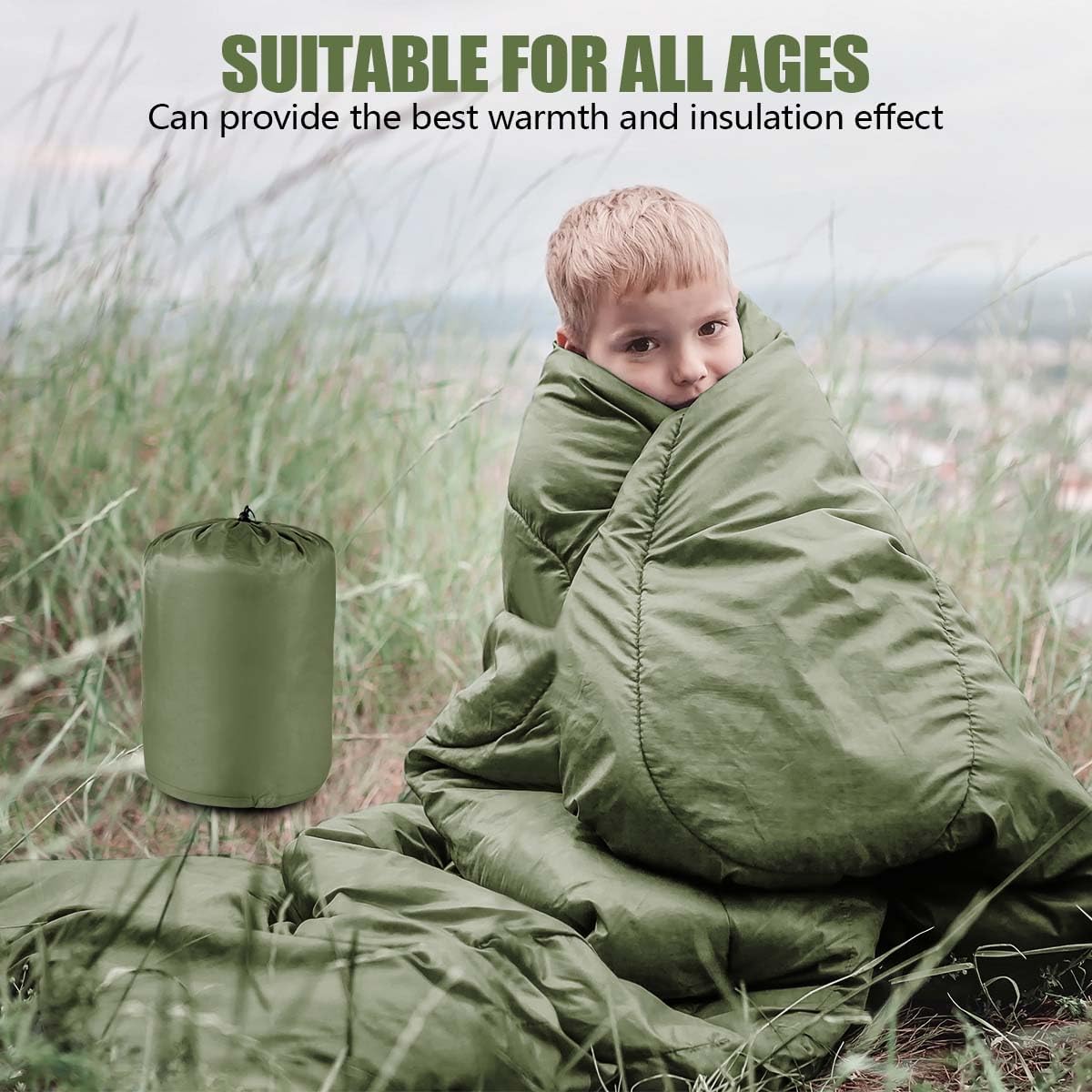 - Multifunctional in various occasions: convenient to carry and easy to store. It is suitable for all outdoor activities such as camping, hiking, backpacking, biking and even survival. It can keep you warm even under extreme conditions. These bags are not only suitable for cold environments, but even for warm weather.