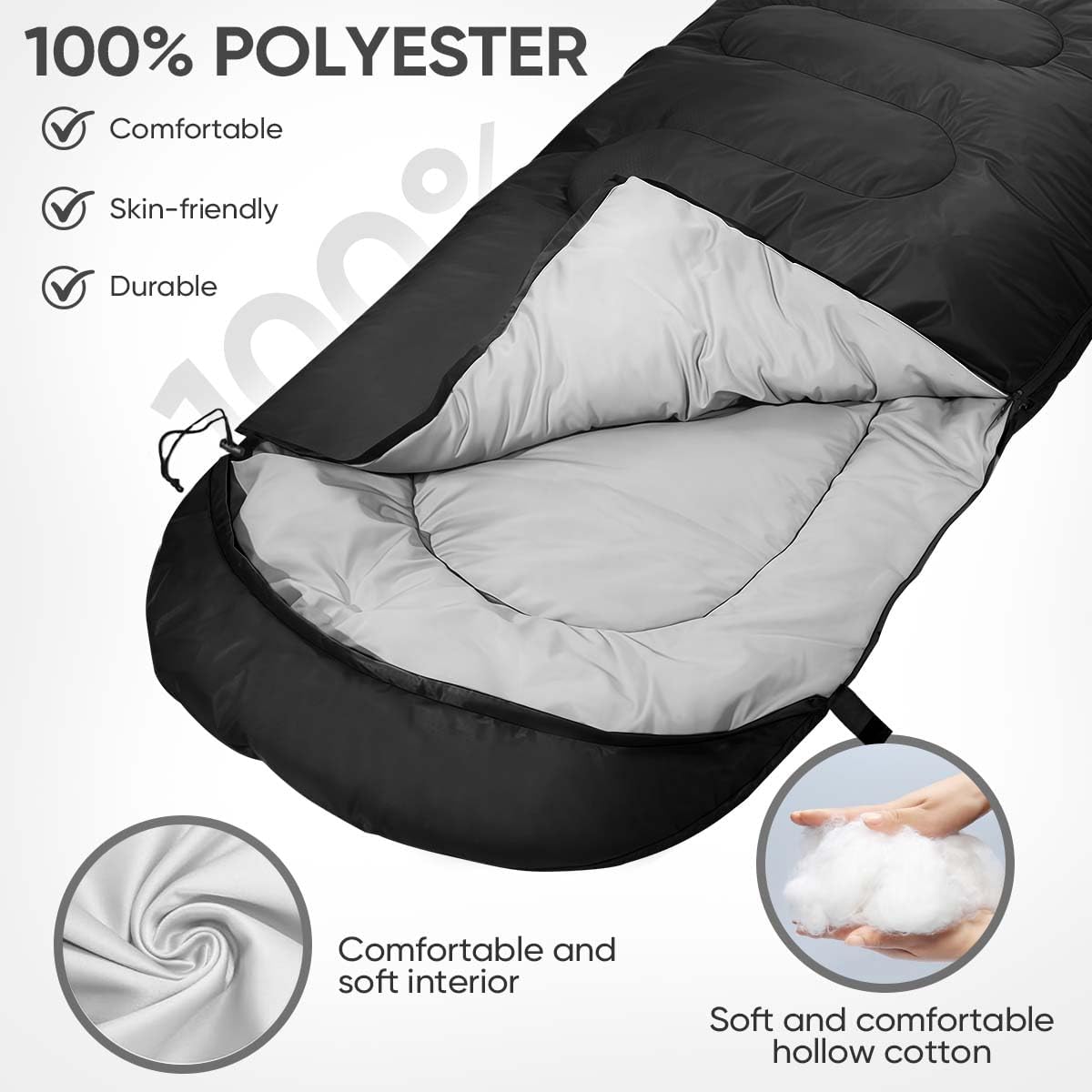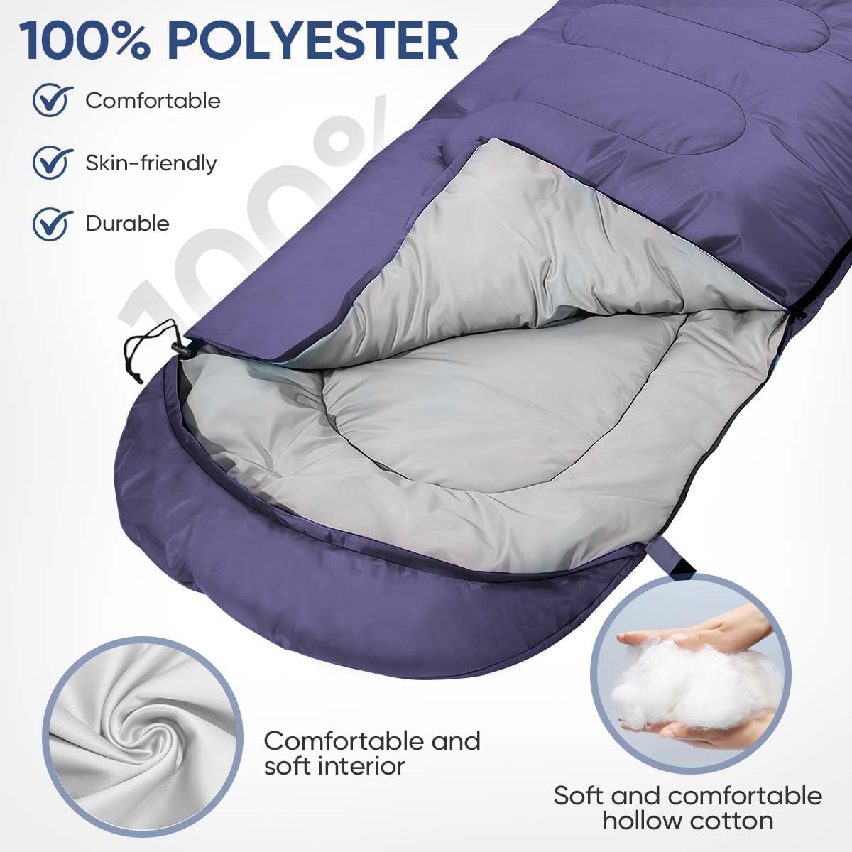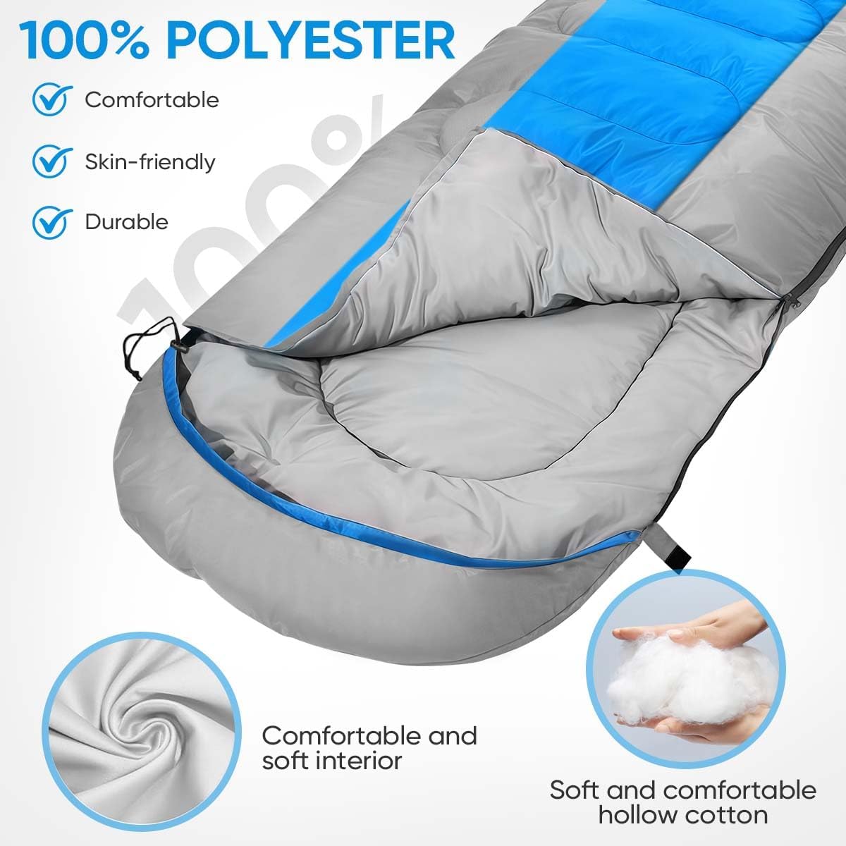 - Comfortable, durable and skin-friendly-100% polyester lining is skin-friendly and comfortable. High-quality polyester makes it durable. No matter how hard and rugged the ground is, you will feel comfortable. They are very spacious for any adult or child. It's easy to get in and out and turn around to find a comfortable sleeping position.