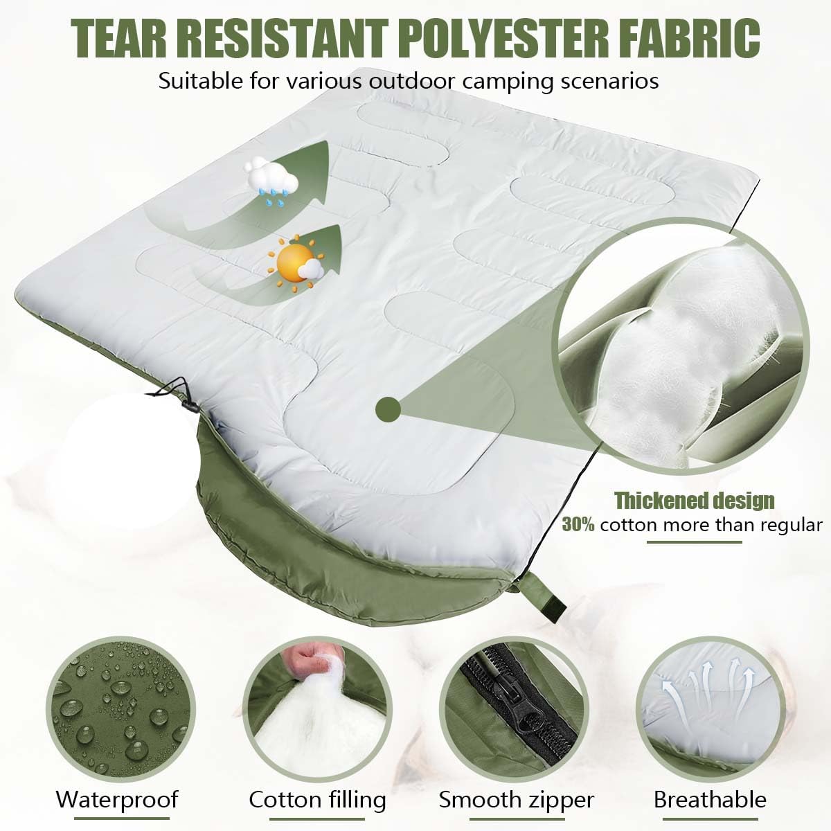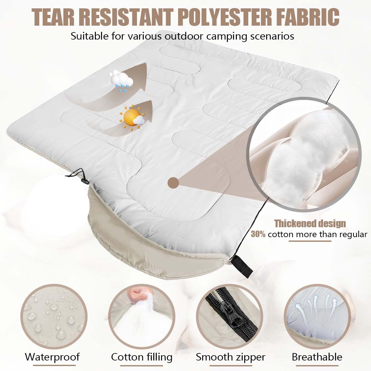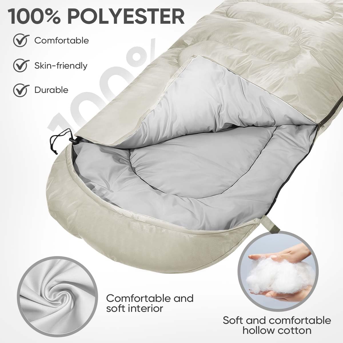 - Comfortable, durable and skin-friendly-100% polyester lining is skin-friendly and comfortable. High-quality polyester makes it durable. No matter how hard and rugged the ground is, you will feel comfortable. They are very spacious for any adult or child. It's easy to get in and out and turn around to find a comfortable sleeping position.