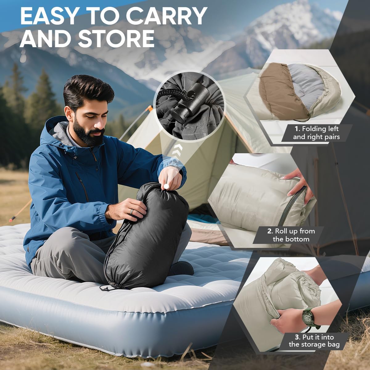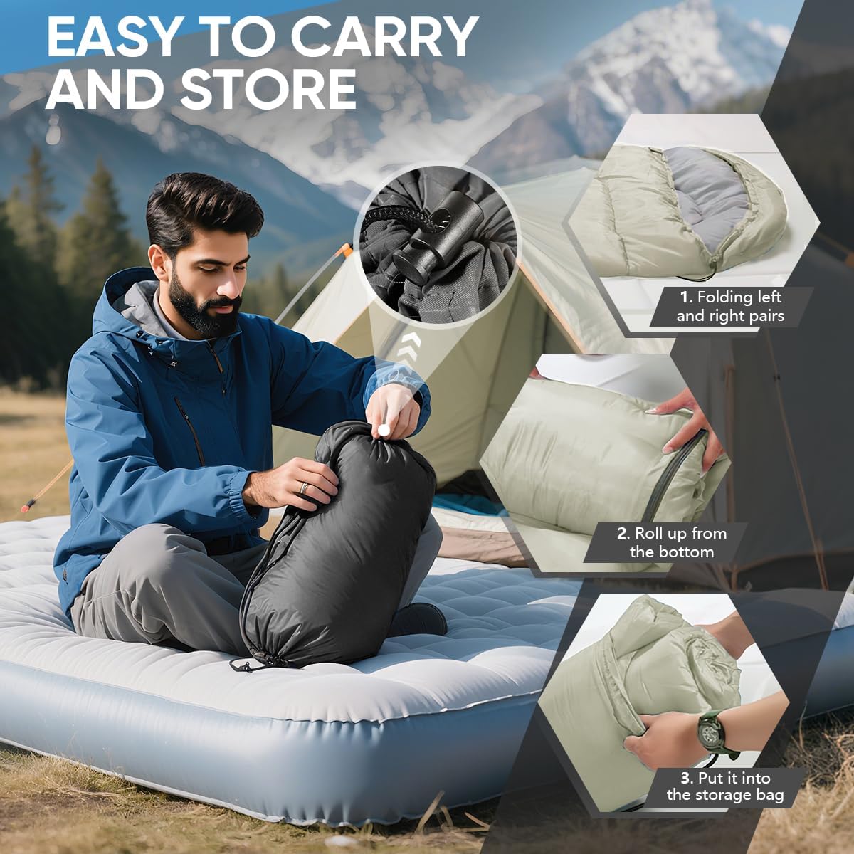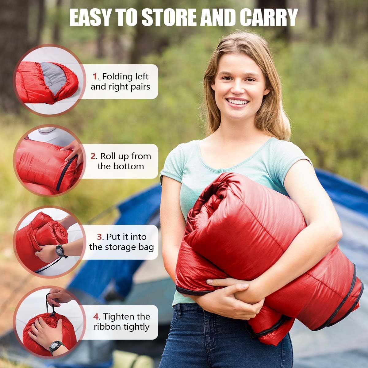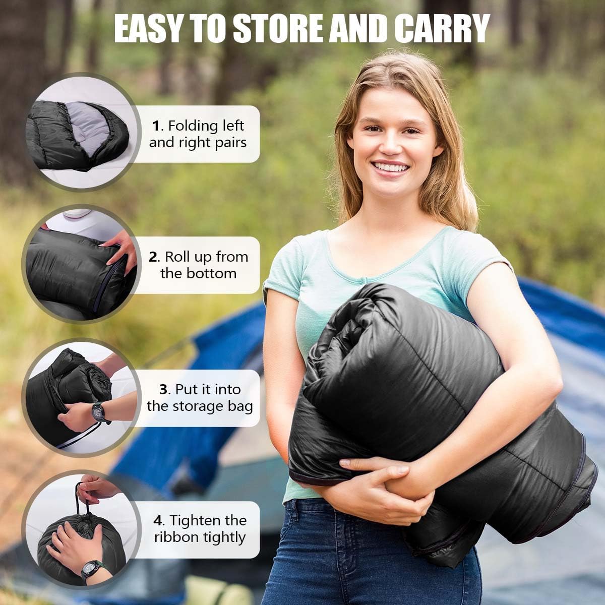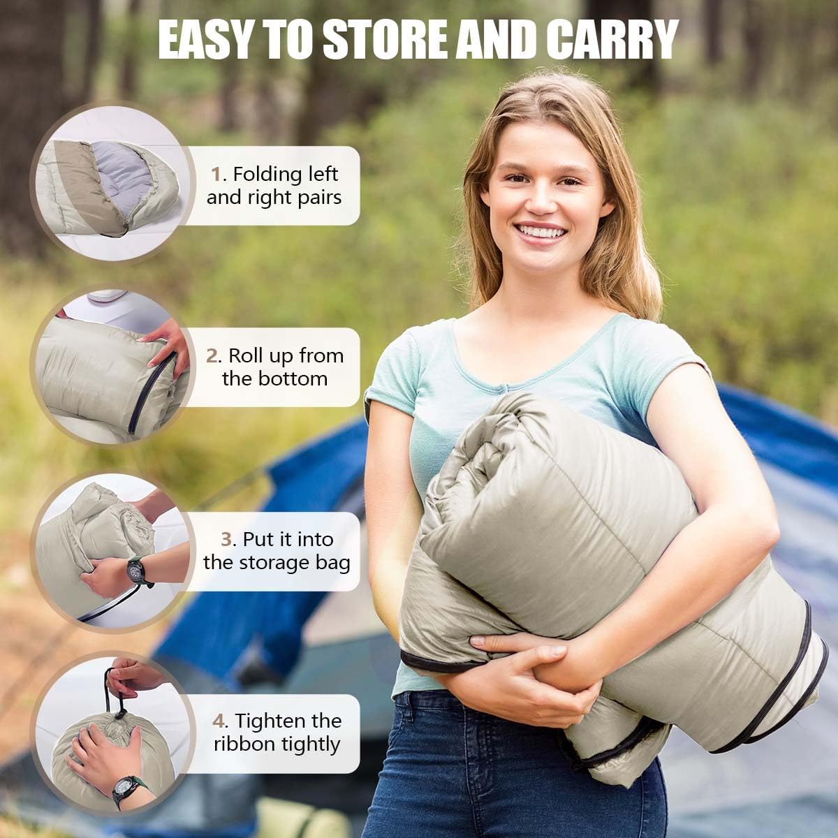 - Our Sleeping Bag is designed for those who want a portable and comfortable sleeping bag for outdoor camping activities, you will be more easy to enjoy the outdoor activates with them. Each sleeping bag is equipped with a compression bag with a shoulder strap, which makes it very convenient to store and carry.