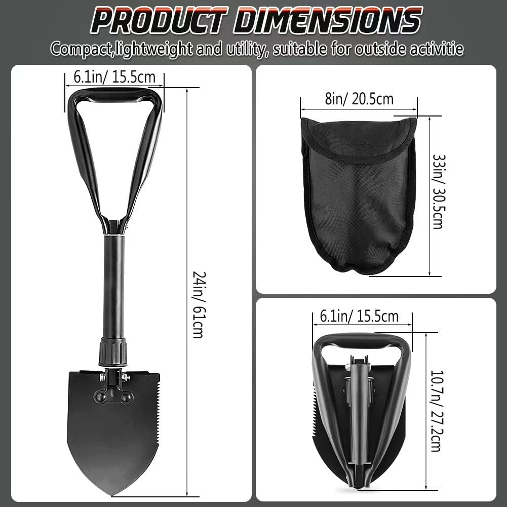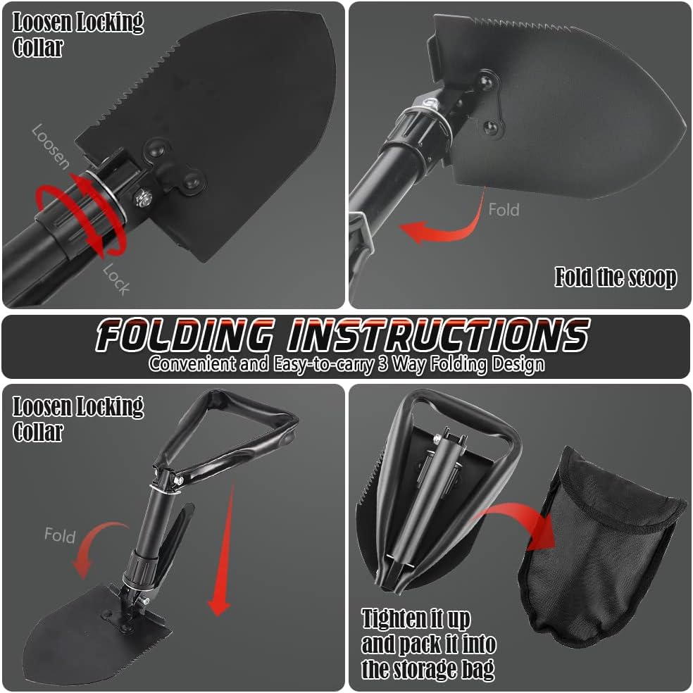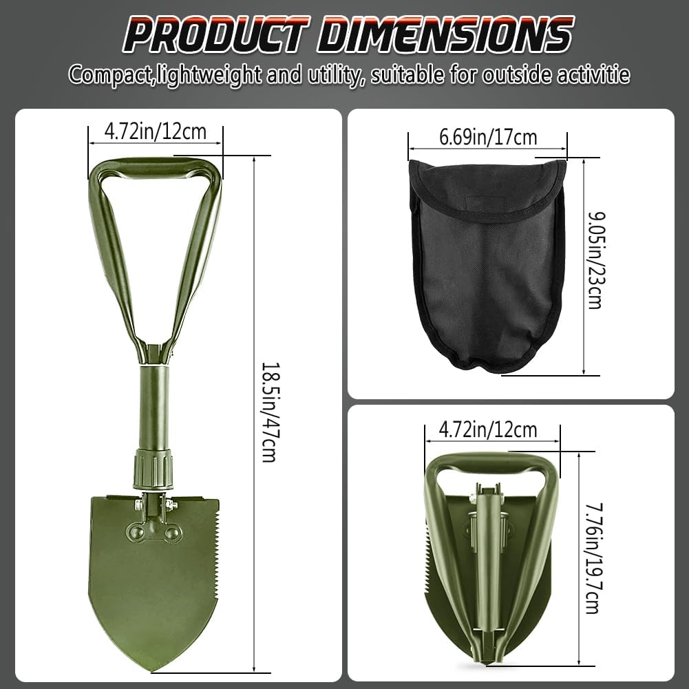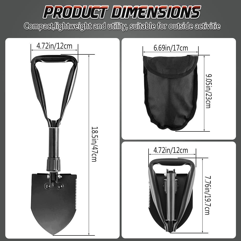 - 【Compact Structure & High Performance】The size of the camping shovel is 18.5inch long, 4.72inch wide, only 7.5inch after folding; used for emergency as well as camping tools or gardening, digging, shoveling, sawing, chopping and digging pits; in addition, the shovel is equipped with a nylon bag, light weight and easy to store