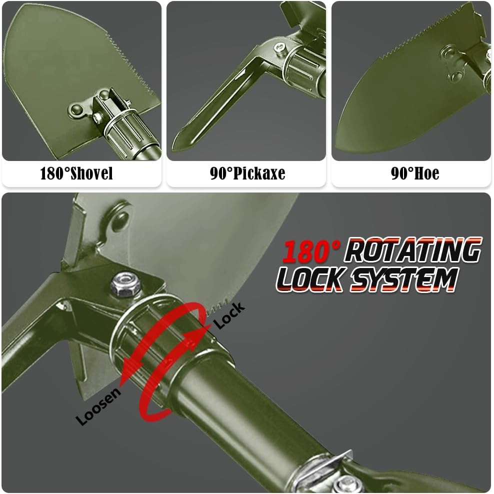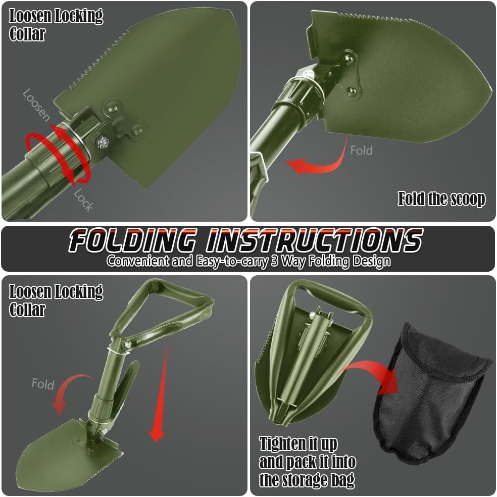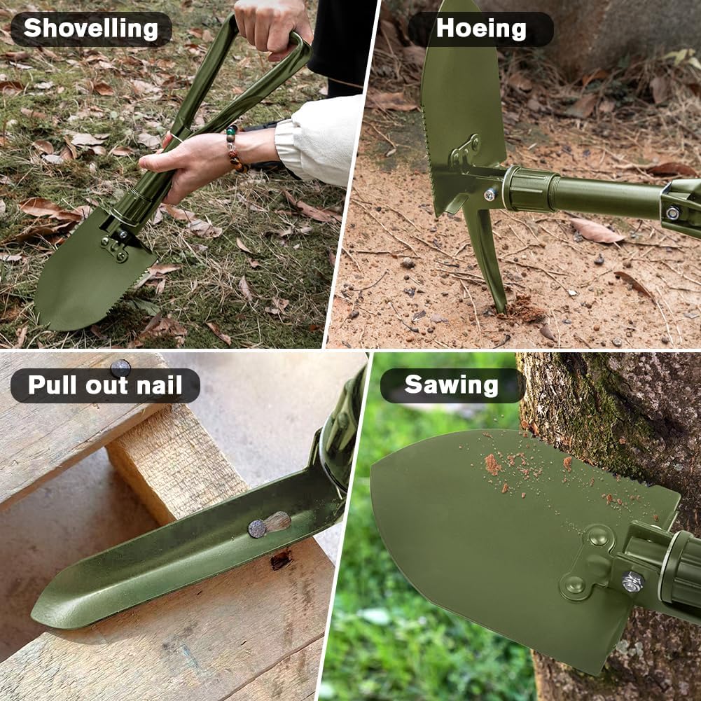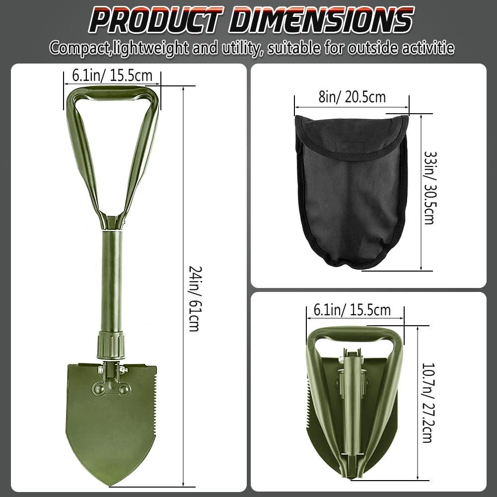 - 【Compact Structure & High Performance】The size of the camping shovel is 18.5inch long, 4.72inch wide, only 7.5inch after folding; used for emergency as well as camping tools or gardening, digging, shoveling, sawing, chopping and digging pits; in addition, the shovel is equipped with a nylon bag, light weight and easy to store