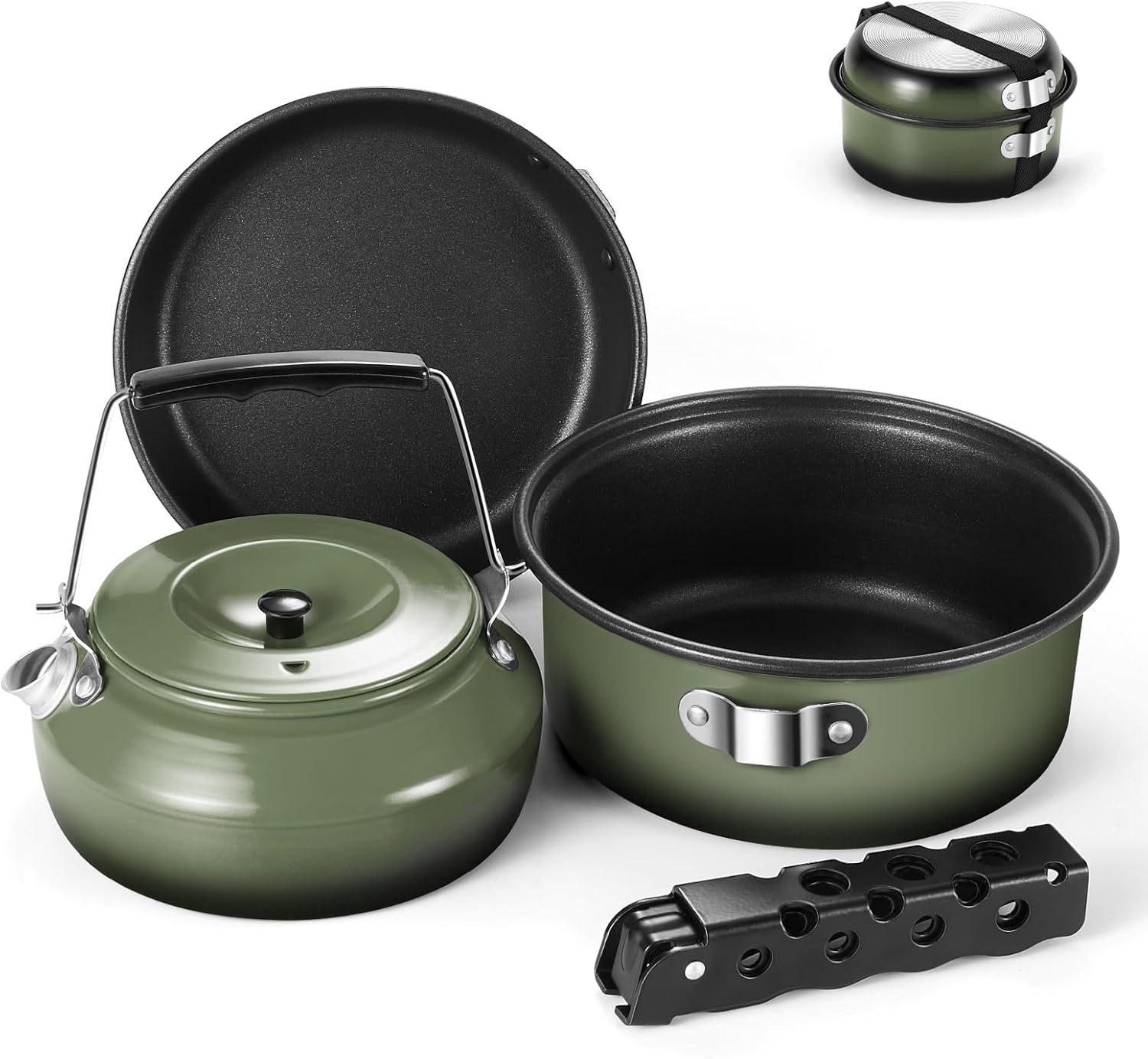 - 【Safe Material】Made from premium aluminum alloy, this camping cookware set ensures lightweight durability and excellent heat conduction for all outdoor cooking needs.