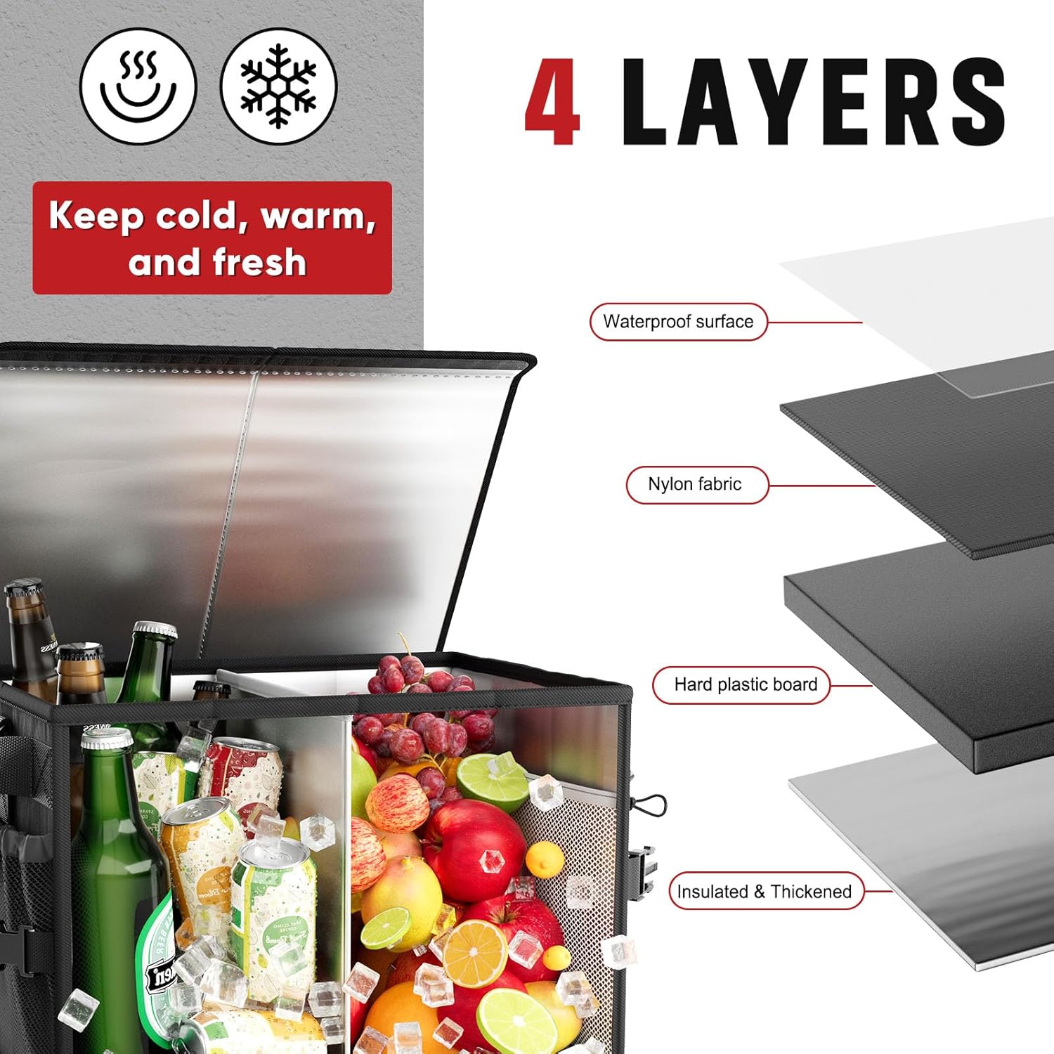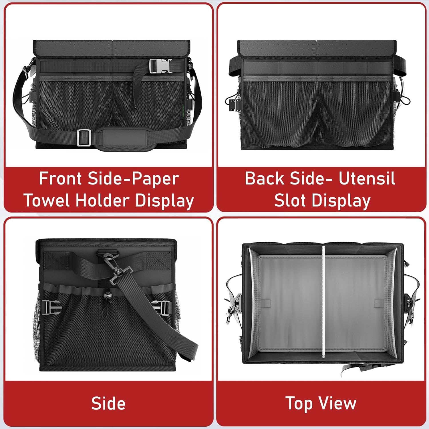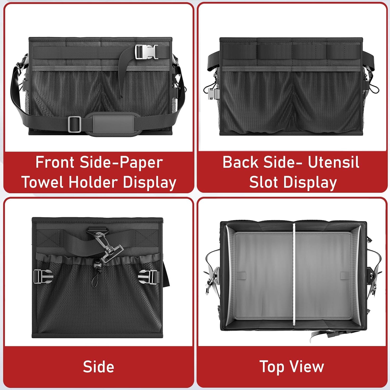 - Easy Carry & Versatile- Features with a detachable padded shoulder strap and easy carry handle for your convenience, make carrying stuff in and out to outdoor activities much easier, saves your time repeated between grill and your kitchen, a great table tool caddy for grilling, picnic, patio, camping, barbecue, outdoor dinner, griddle, rv, also a great gift for grilling lover and camper