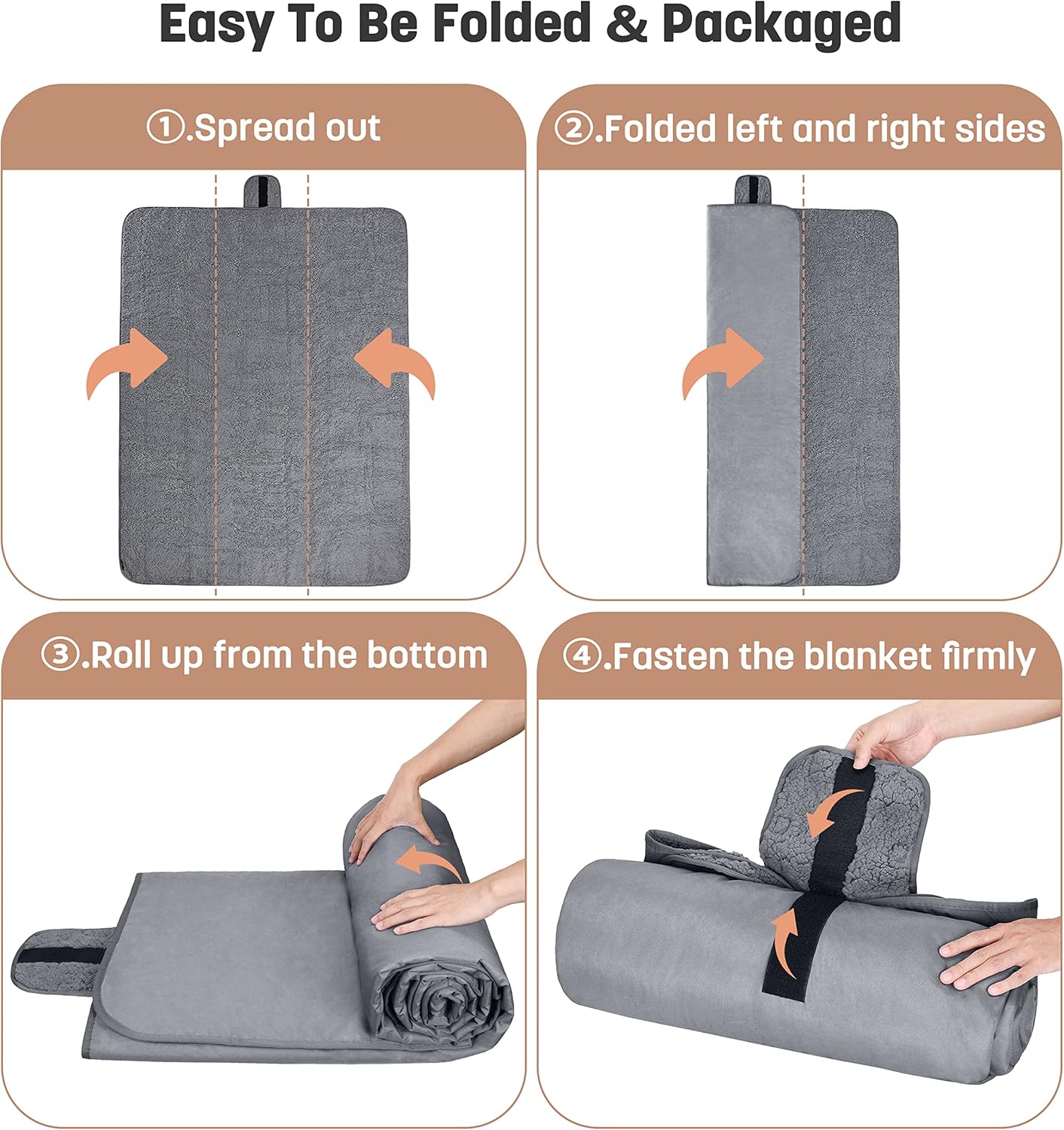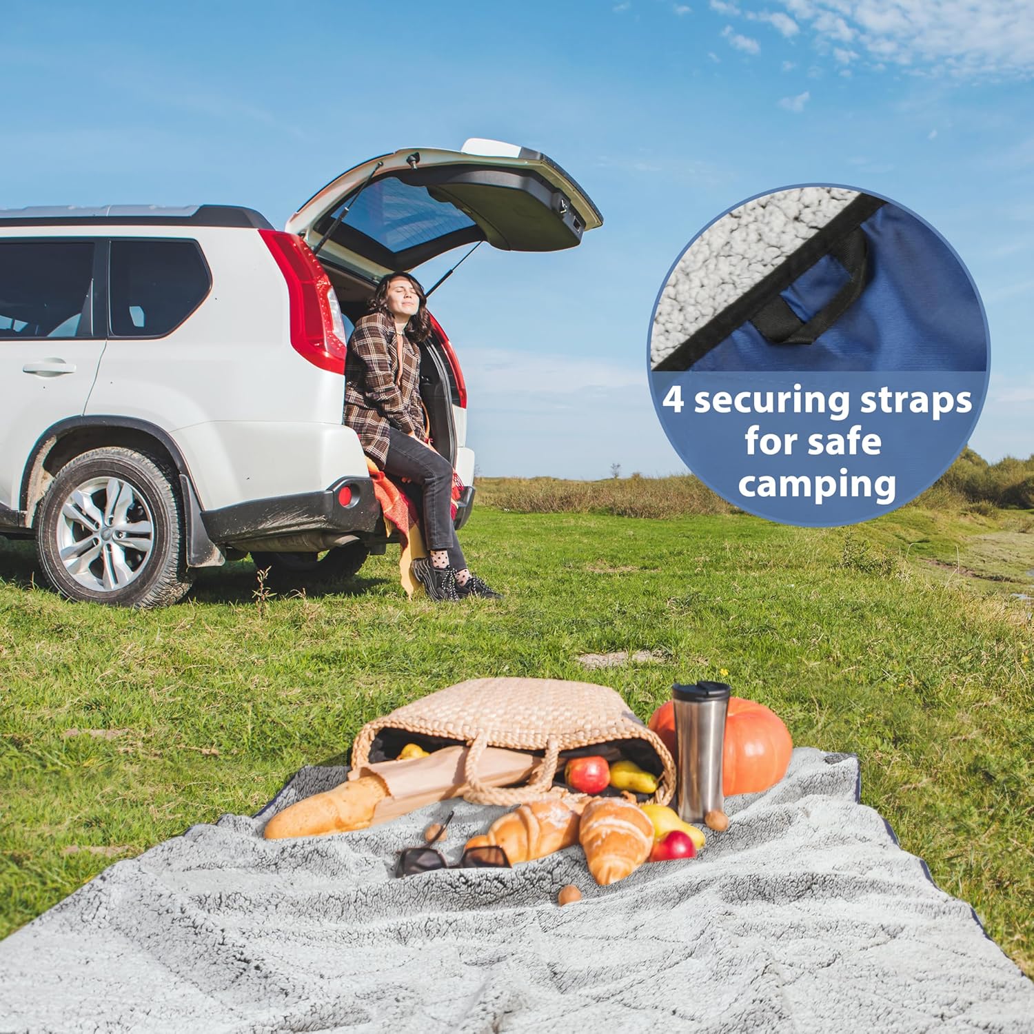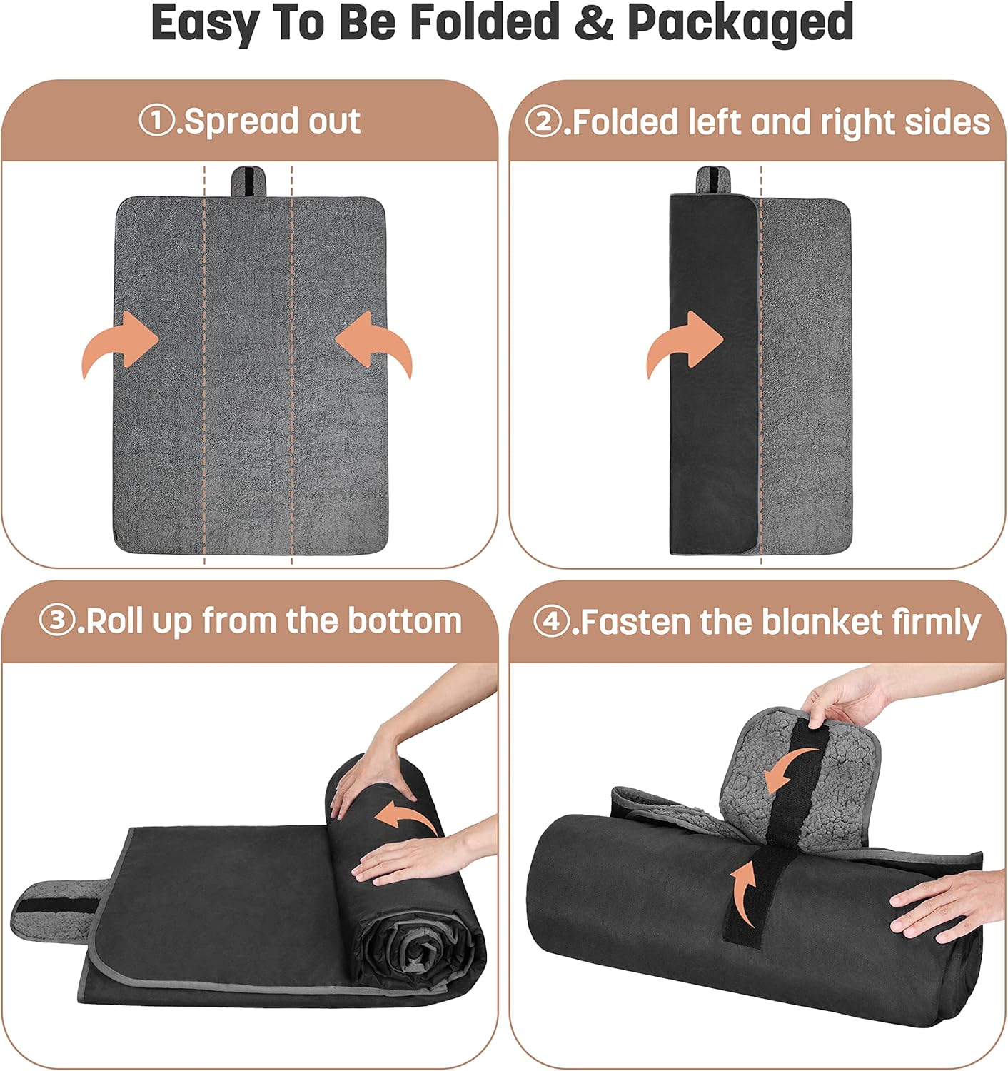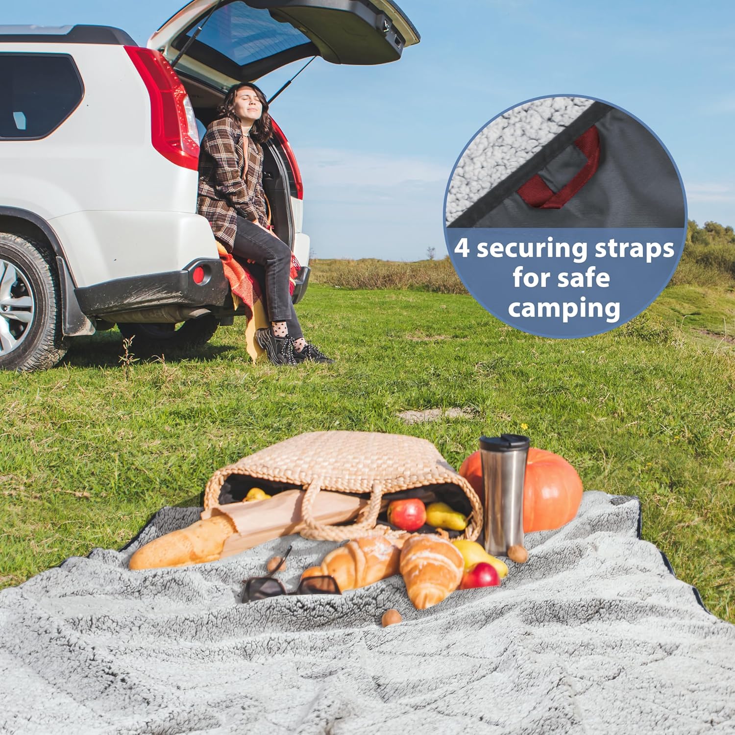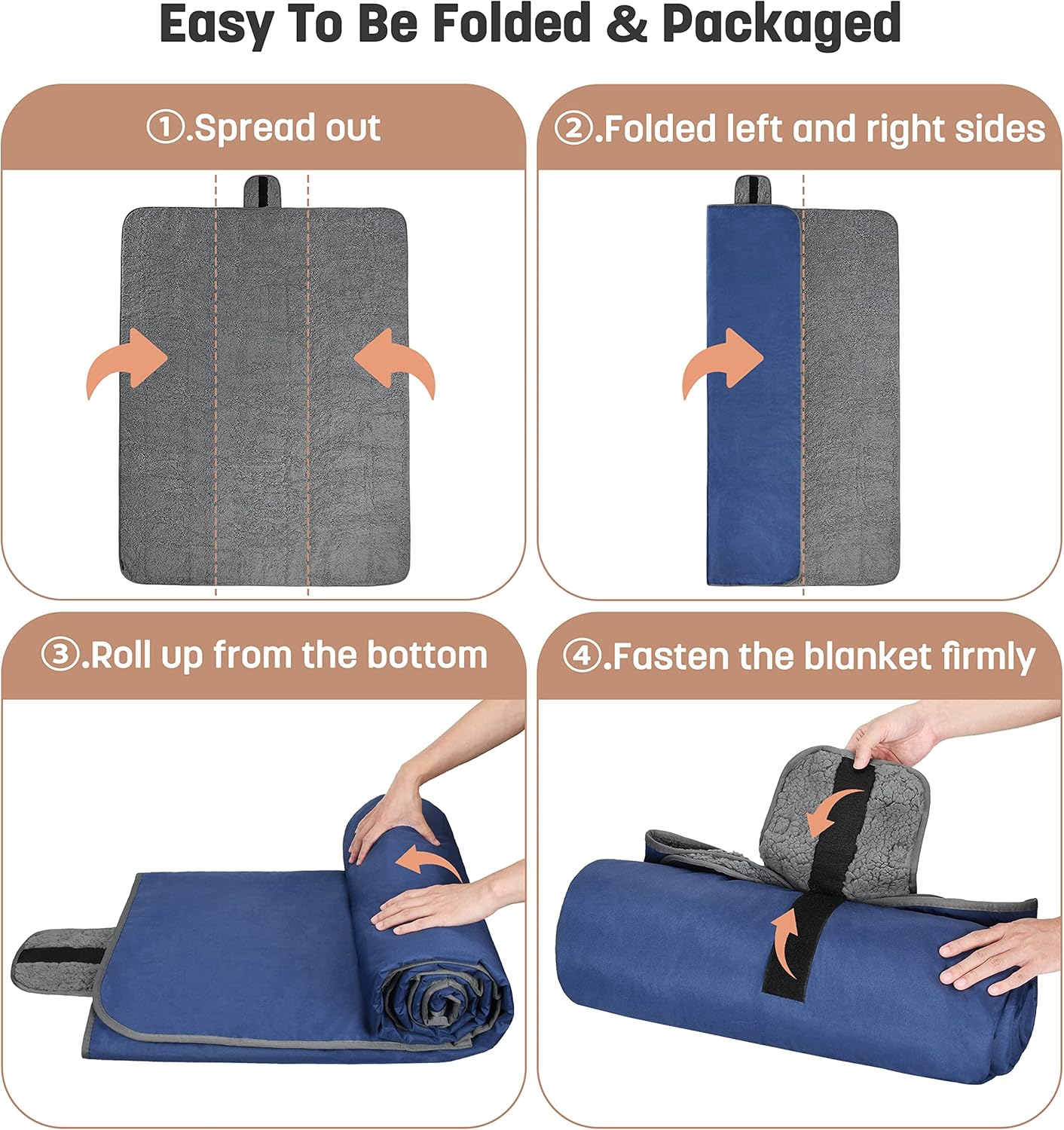 - Multiple Sizes & Colours (51” x 59”) (59” x 80”)(66”×90”) - The large plush fleece camping blanket have a nice size to completely self-folding, covers trunk, seats. Big enough for 2-4 & 3-6 to sit on respectively