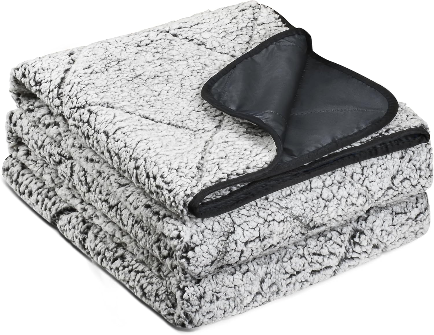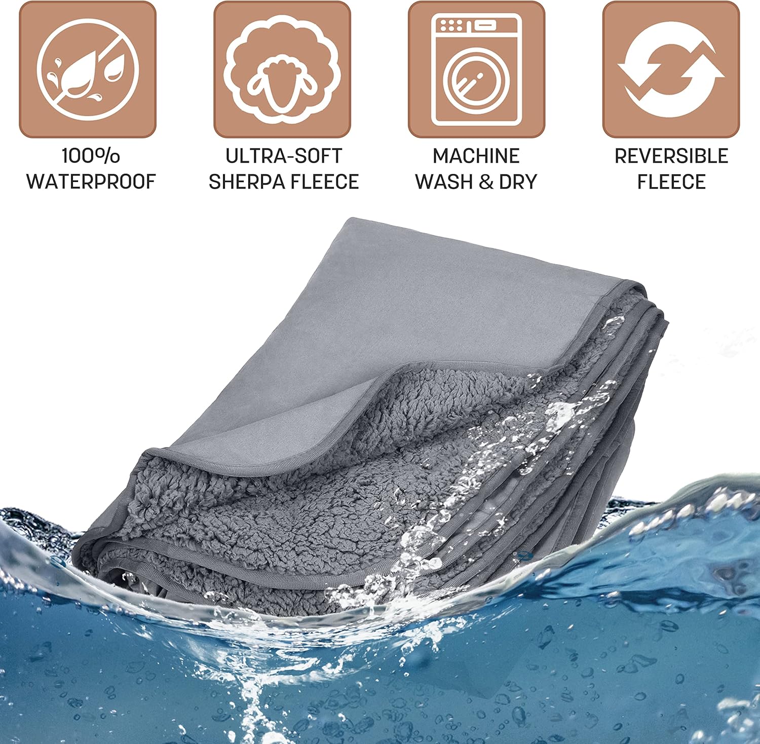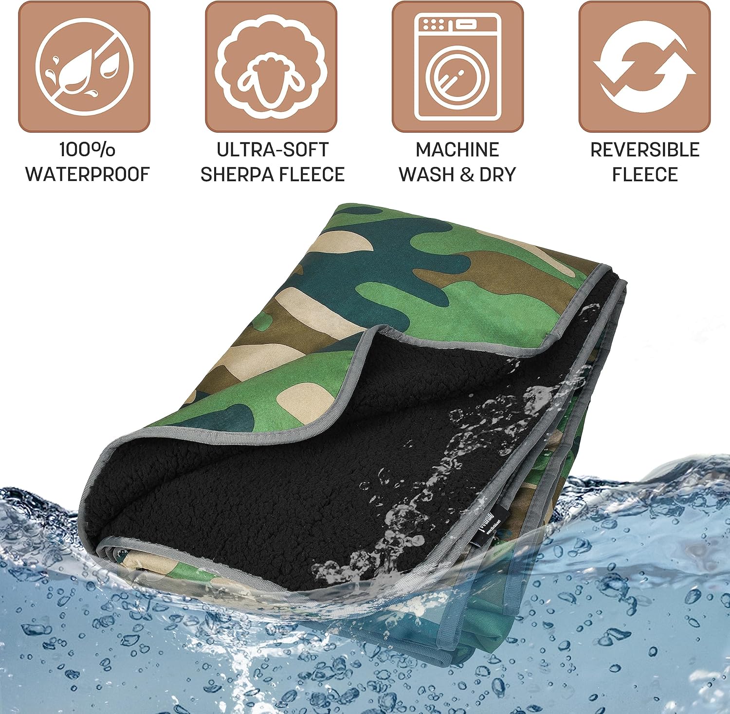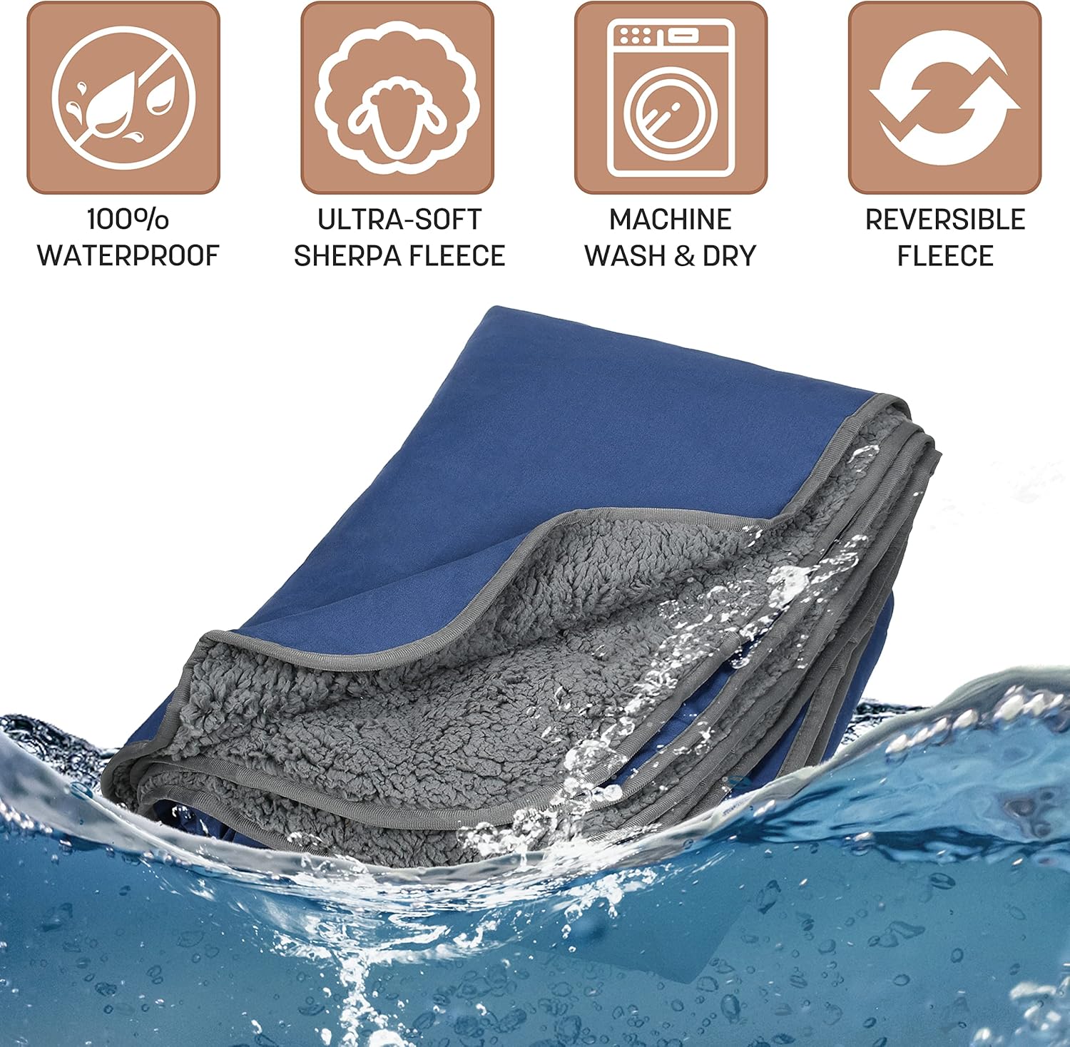 - Waterproof Backing & Wind-Proof -Our waterproof outdoor blankets are made of 300D Oxford fabric and 220gsm Sherpa knitted fabric. Backing and soft thick sherpa lined which makes it wind and water resistant to keep you dry, warm and comfy all day. Be aware the soft plush fleece side is not water resistant.