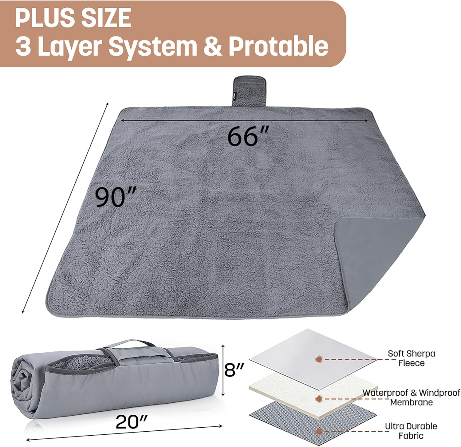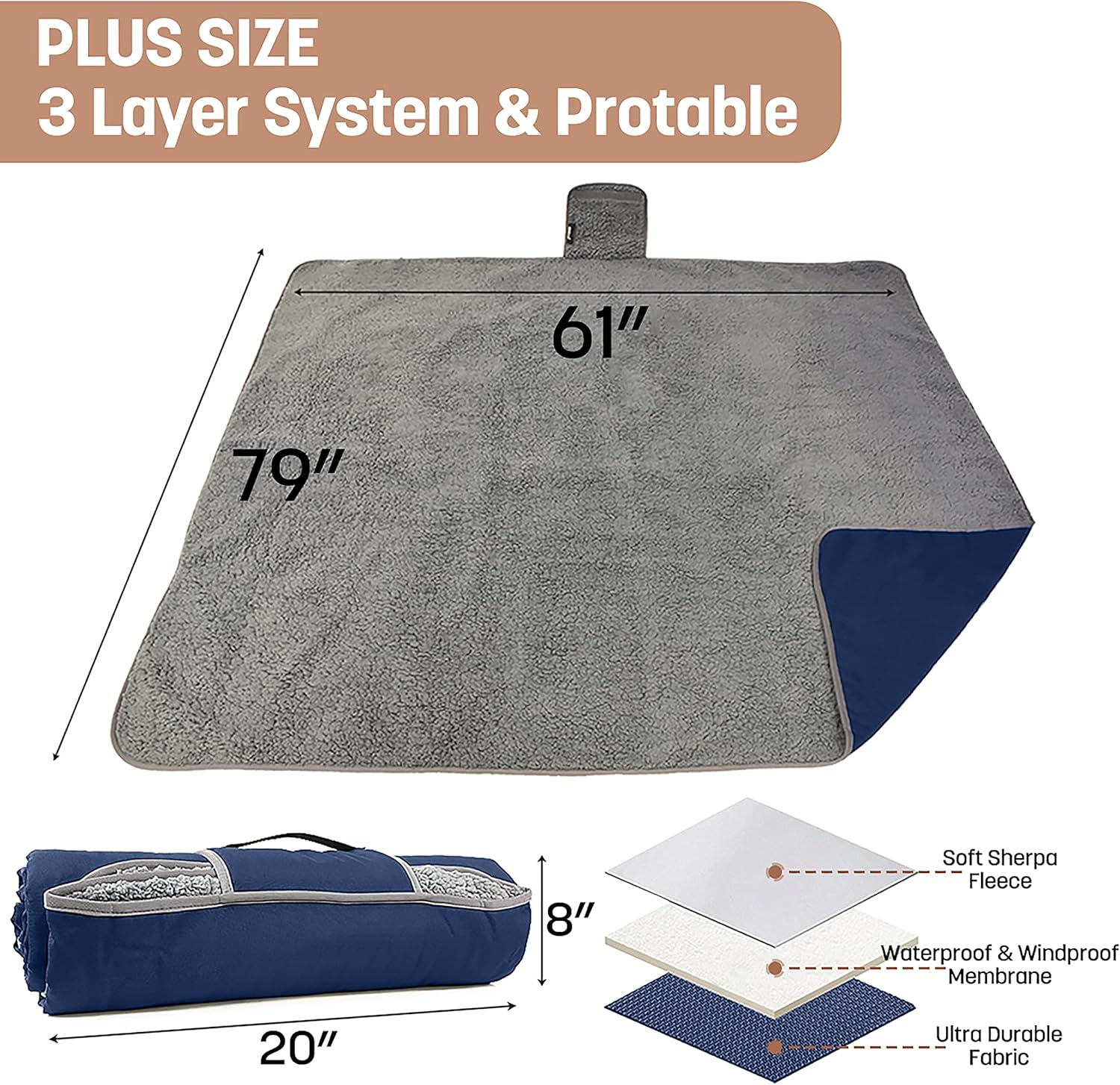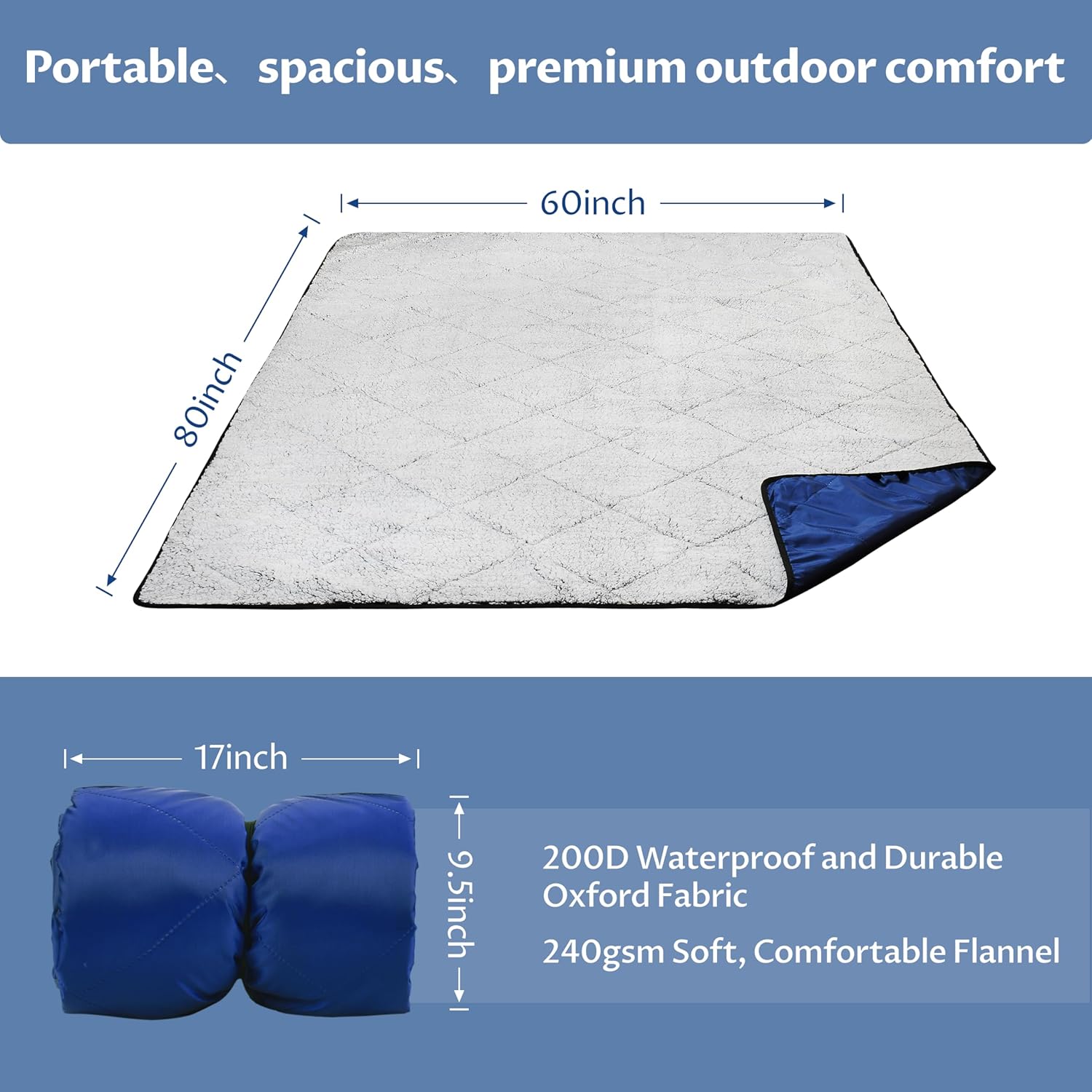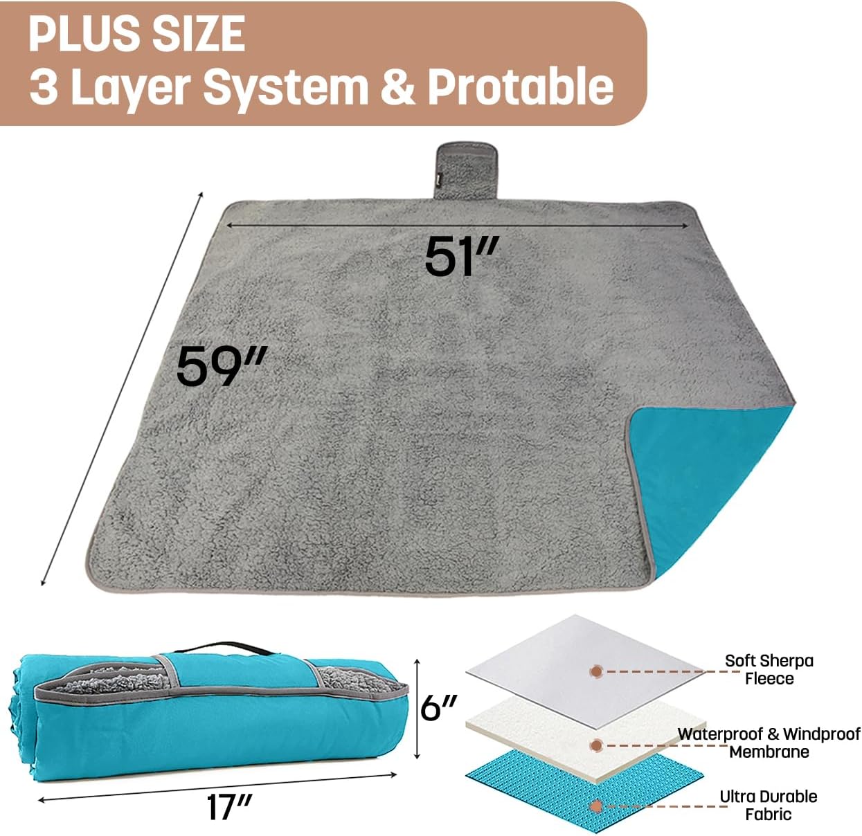 - Multi-Use - This warm camping blanket awesome for rainy soccer games, damp rainy weather, windy stadiums, chilly days at the park/concert/picnic, pet sit on the couch car back seat. This waterproof outdoor blanket will be everyone's favorite