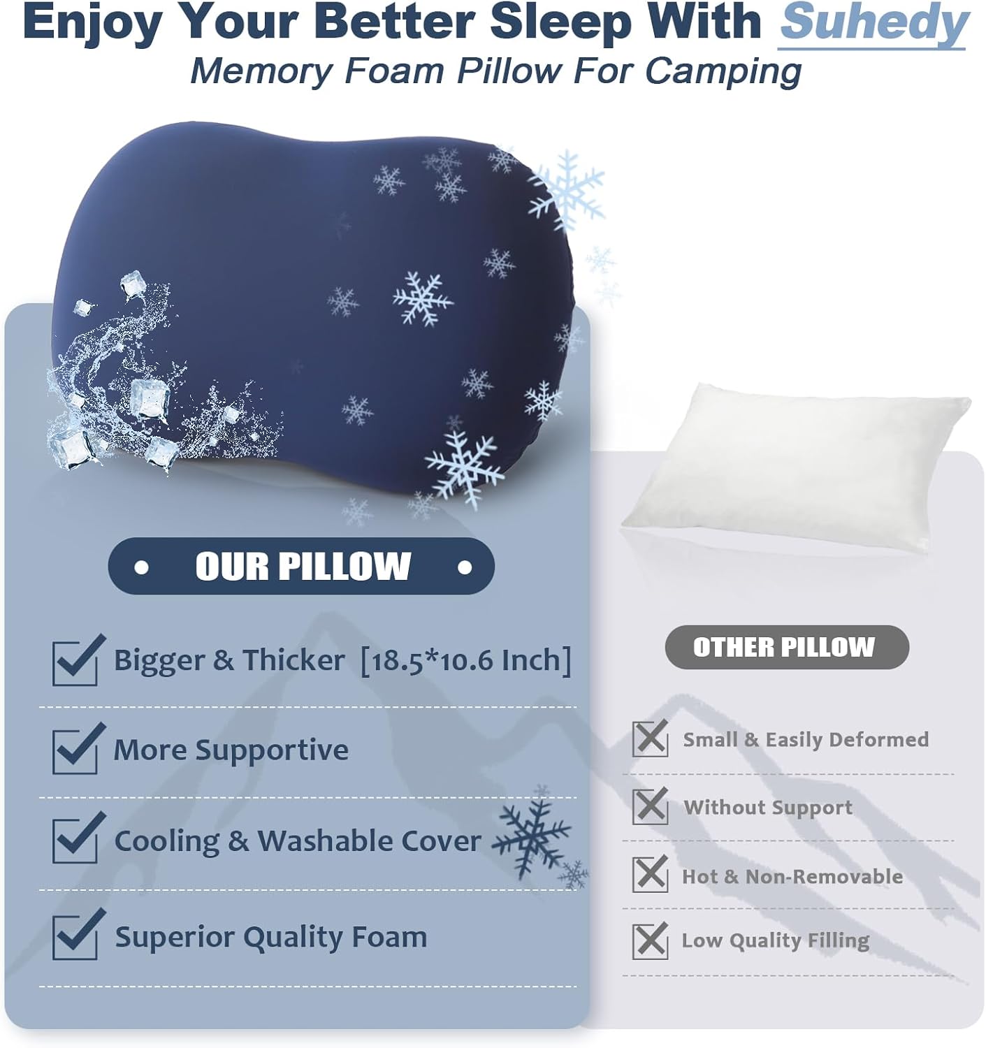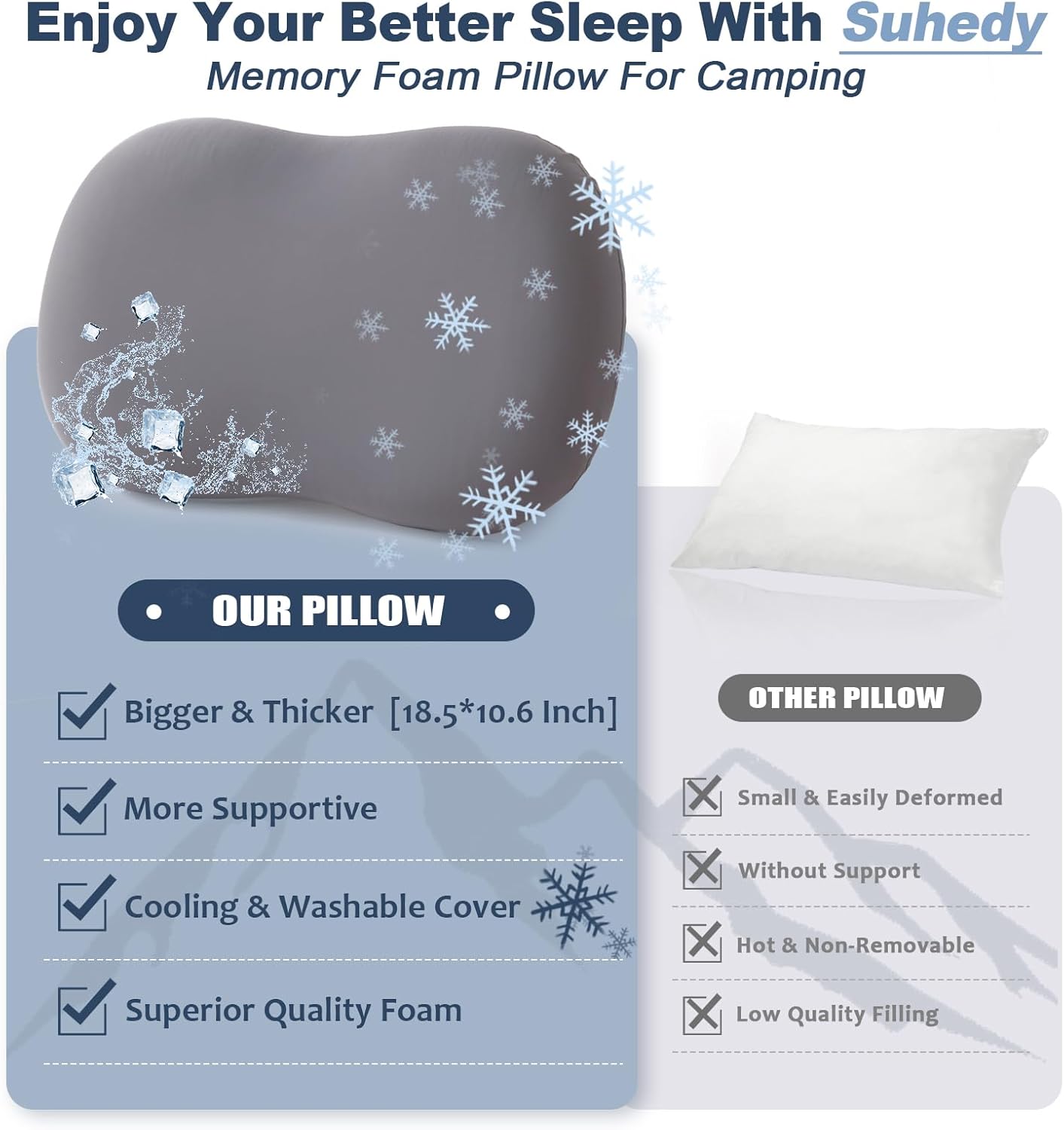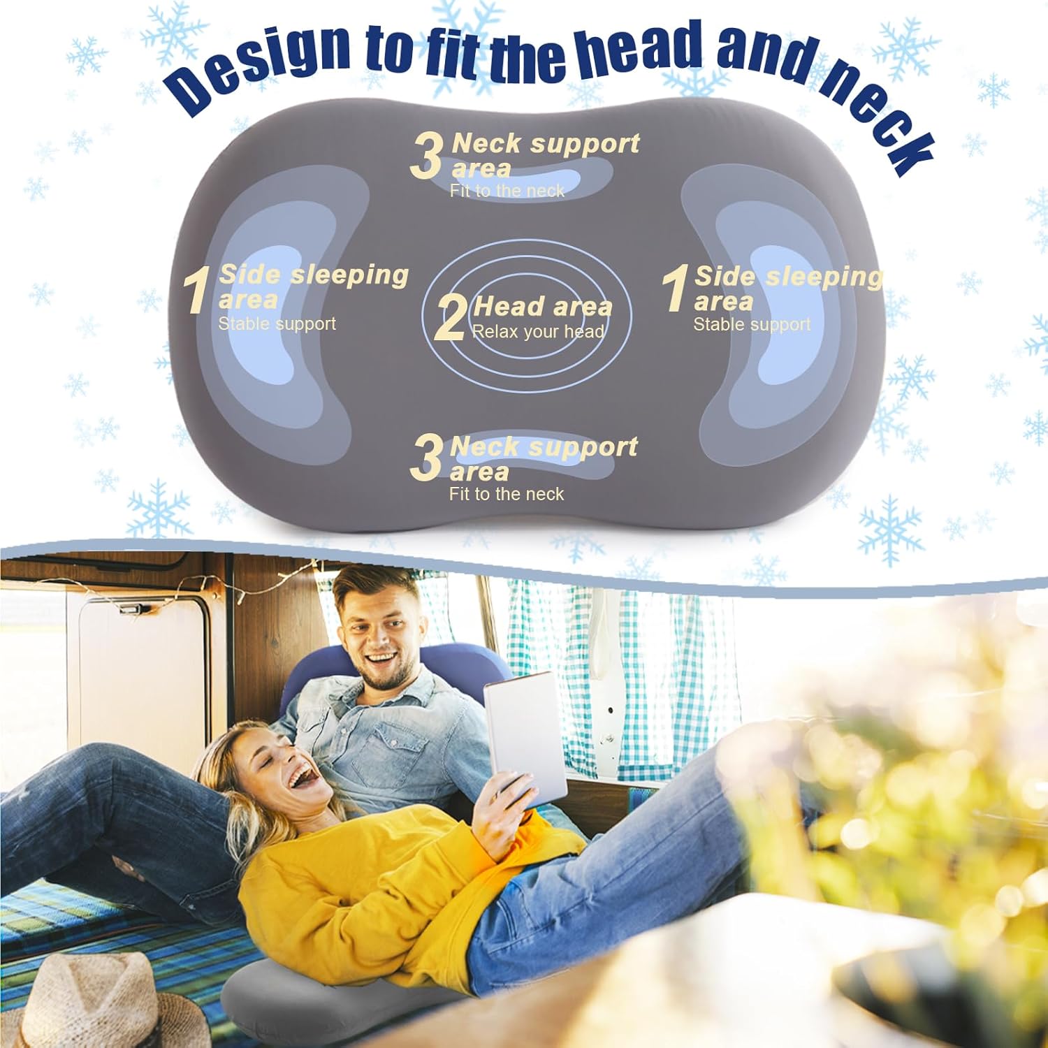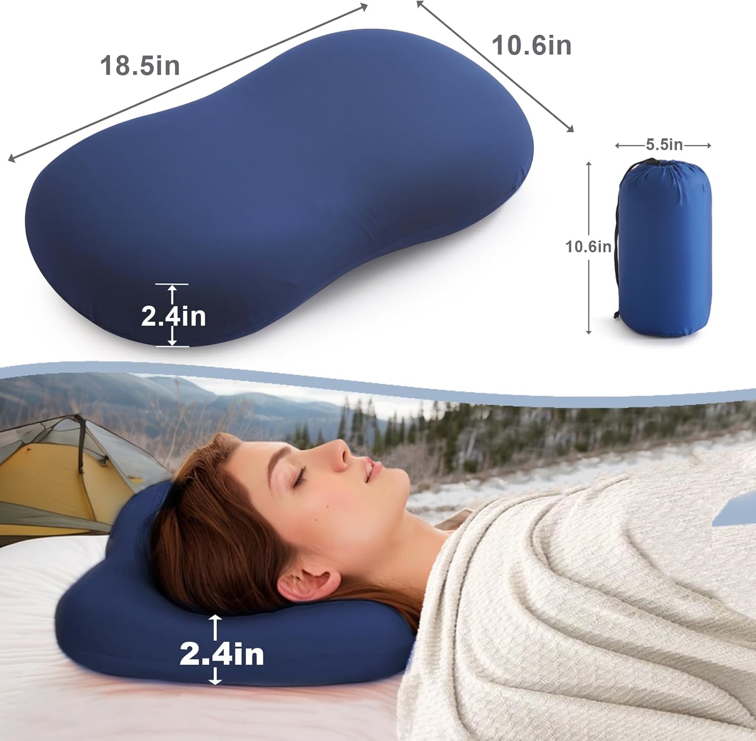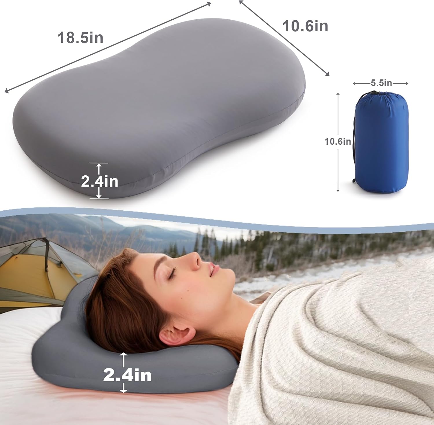 - Camping pillows ensure comfort and rest no matter where you are, and there will be no stiff neck or shoulder pain when you wake up, unlike uncomfortable inflatable pillows.