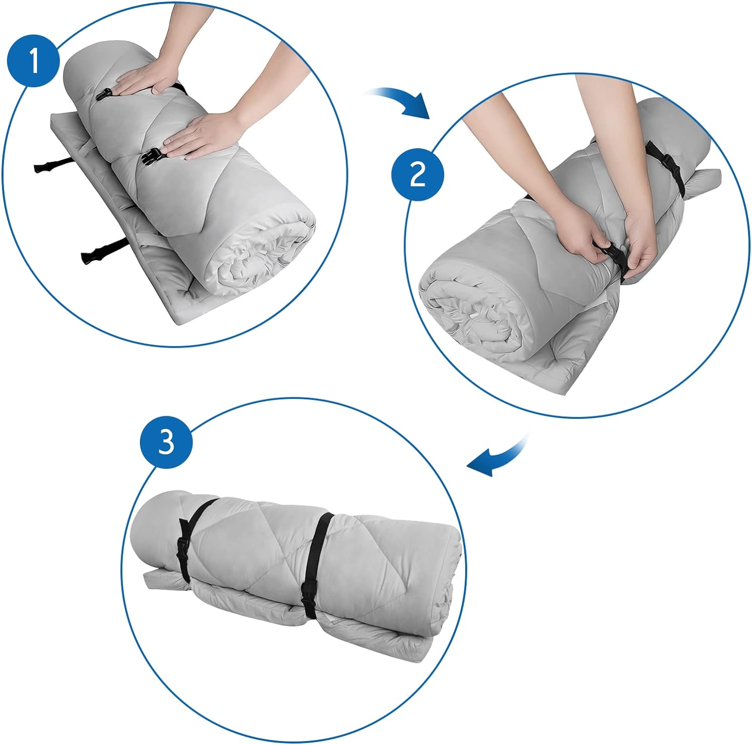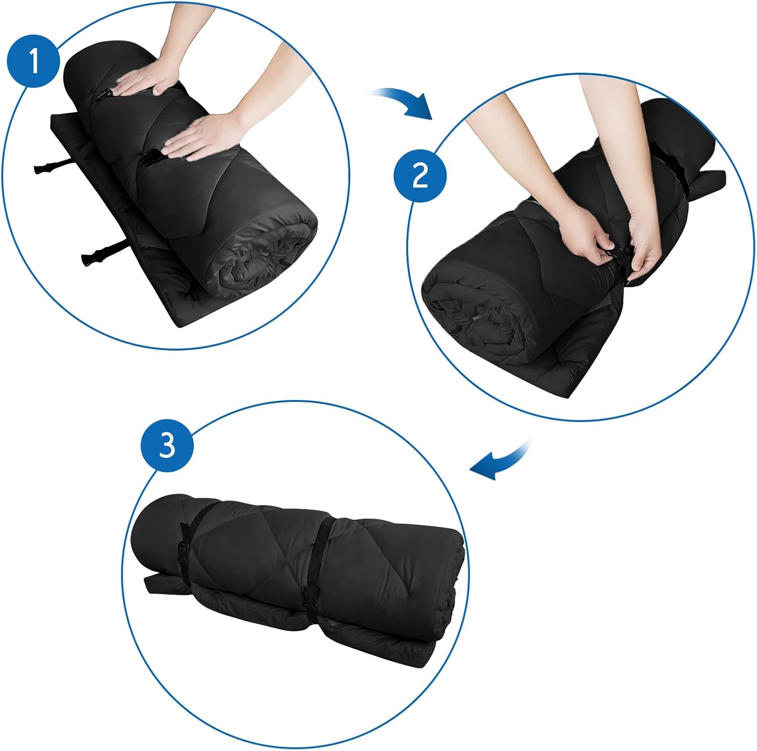 • Lightweight & Portable: Weights only 4lbs, women can also lift the camping mattress pad with one hand. Roll up the cot mattress and tie the ropes at both ends, you can easily store it. Take this roll up cot mattress when outdoor traveling as a tent bed or sleeping in your camper van. Our sleeping foam pad provides great comfort on your outdoor travel, walking, camping, hiking and backpacking.