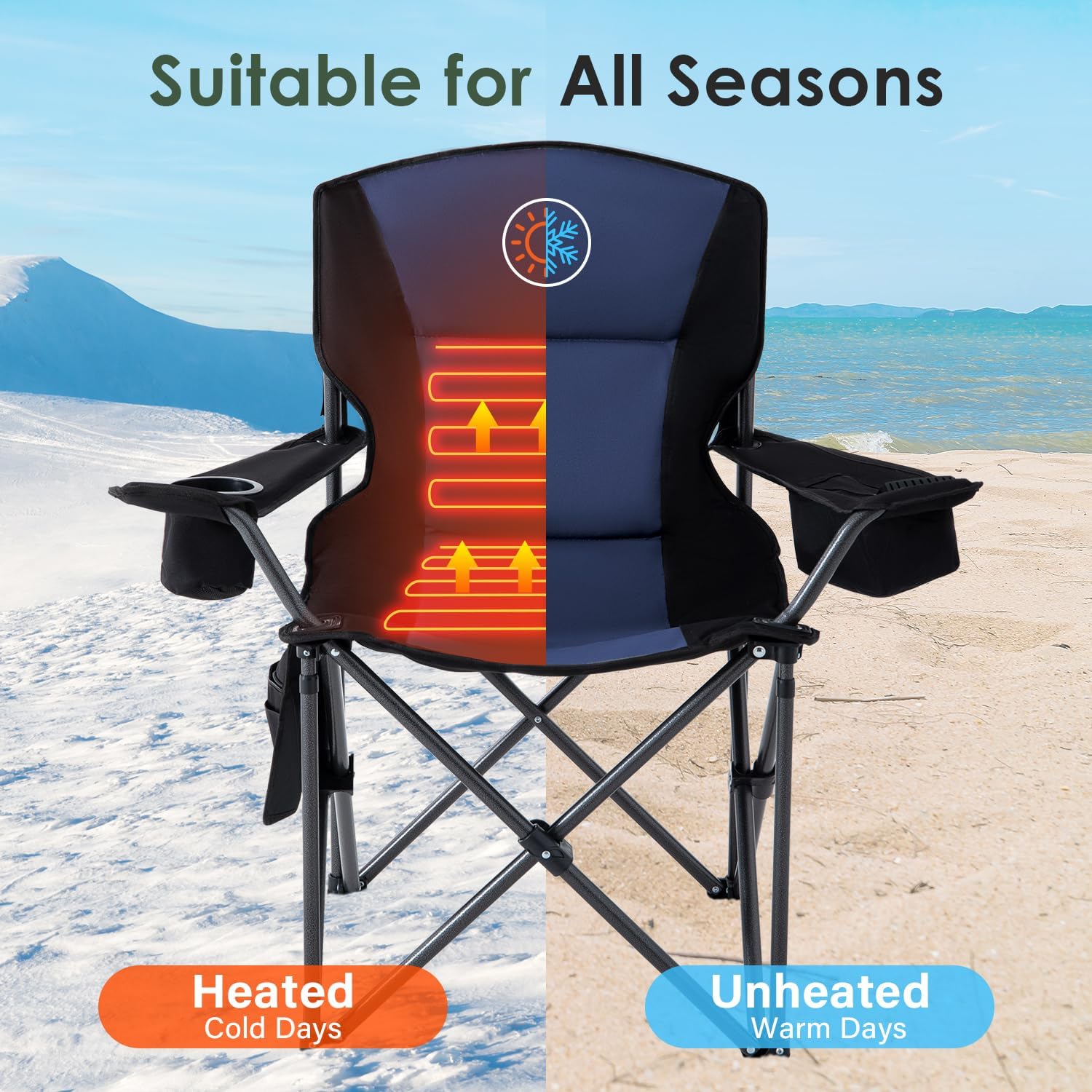 - Quick Heating: Homcosan heated chair adopts upgrade bending-resistant heating material, which is fast heating, more safe and stable. This camping chair is an essential accessories for your outdoor use