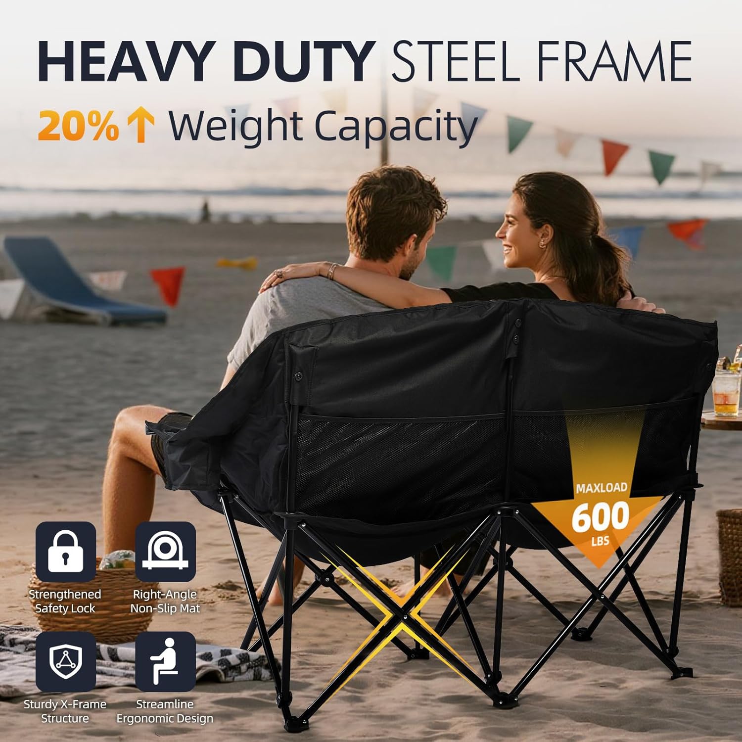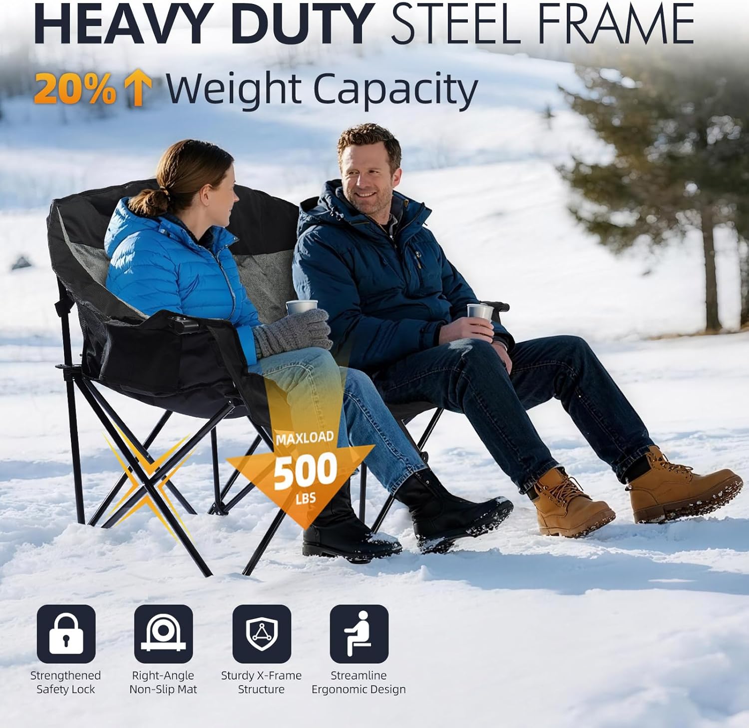 - Heavy-Duty Steel Frame - Newly upgraded reinforced X-shape steel construction with 22mm thickened tubes and anti-rust coating. Supports up to 500lbs for long-lasting durability. Non-slip textured feet ensure a stable seating experience for everyone.