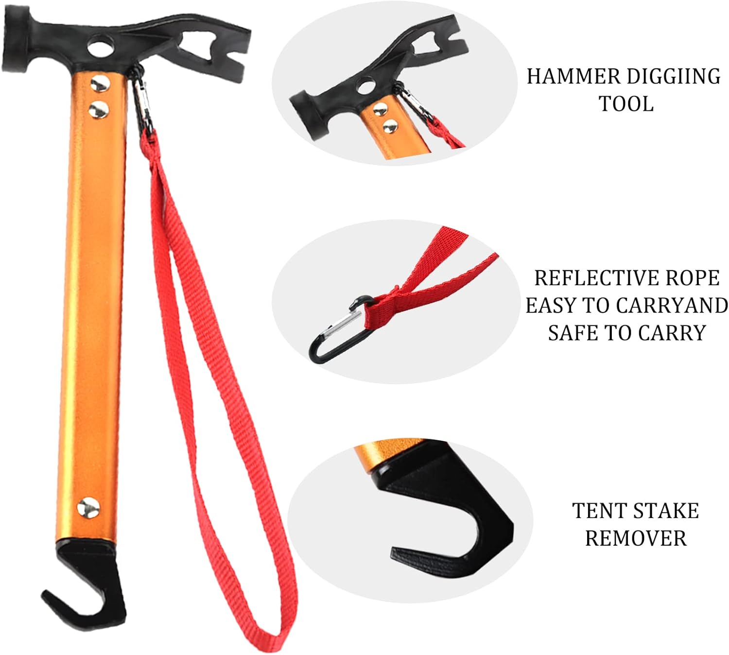 • Carbon Steel Aluminum Camping Hammer, 12" Small Lightweight Three-in-One Functional Tent Stake Hammer for Hiking Kit Orange