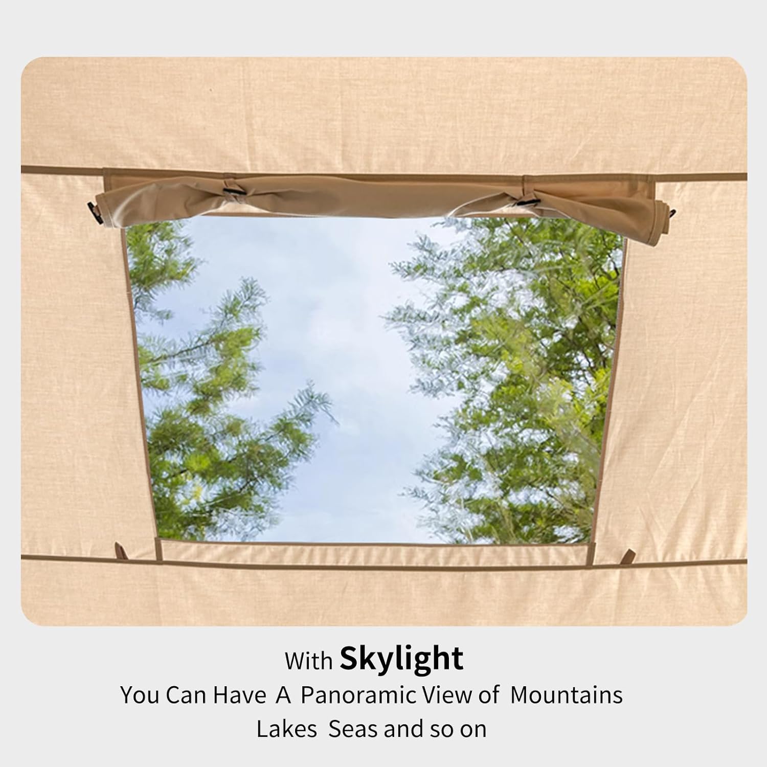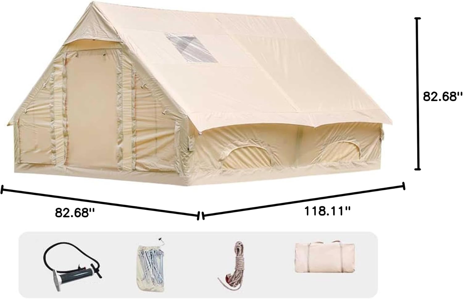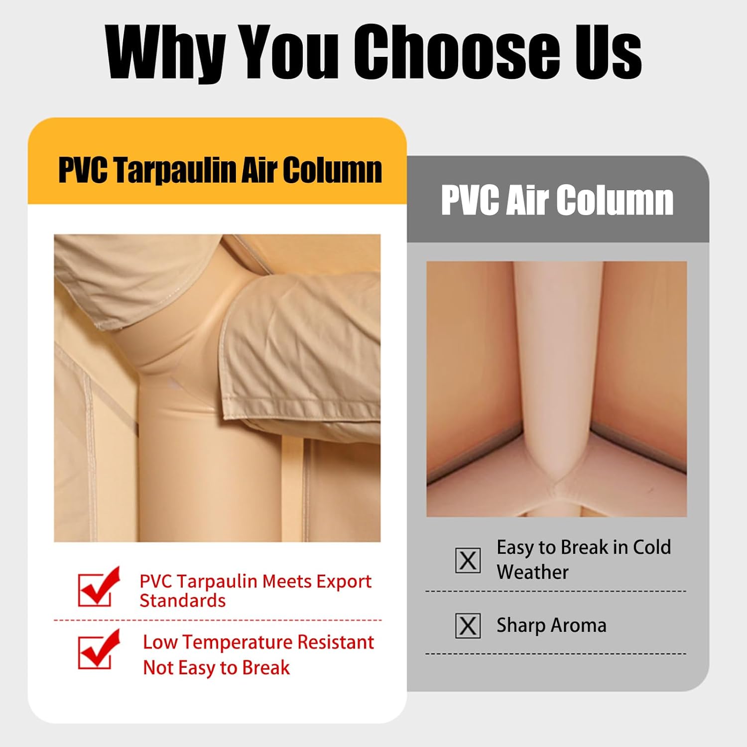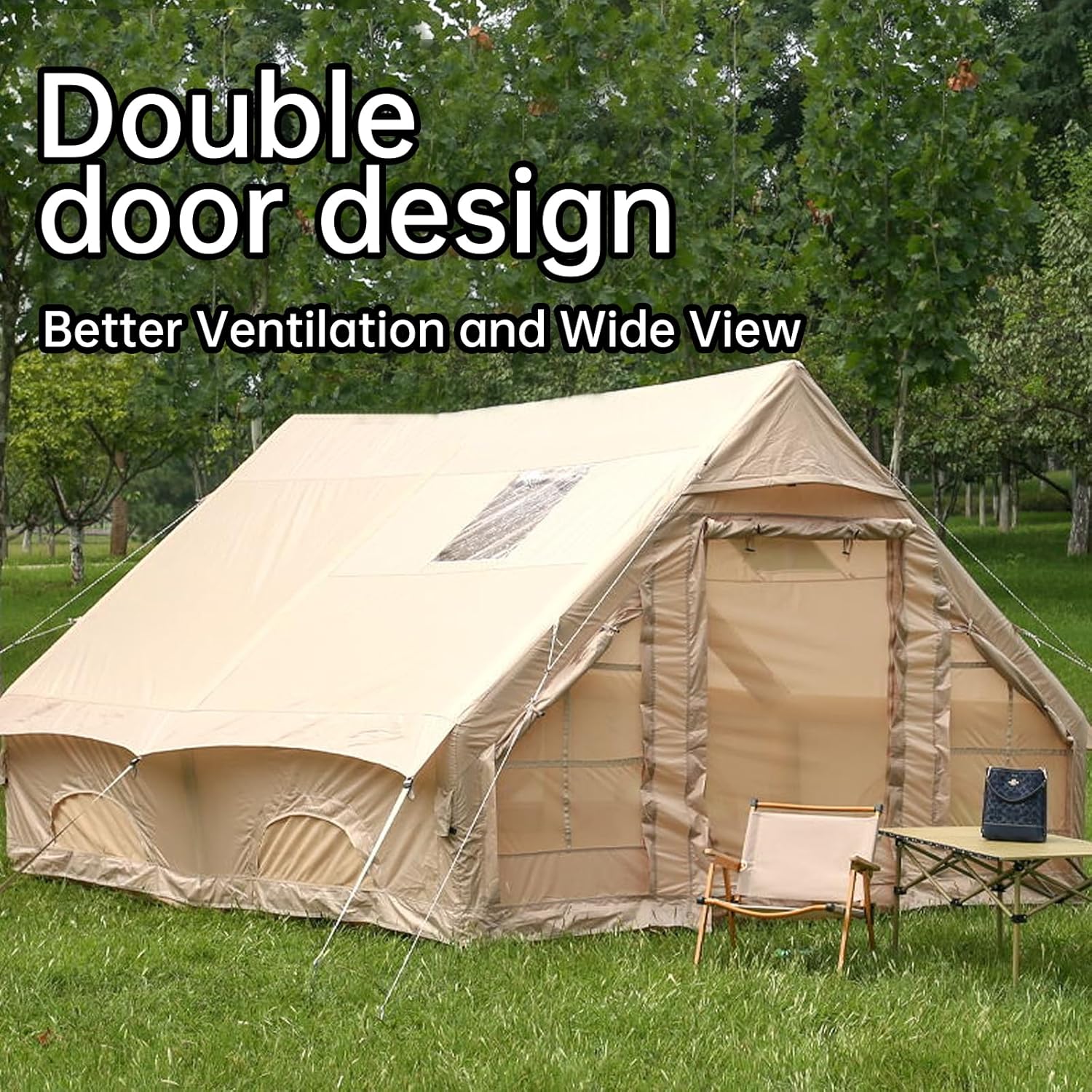 - 【Waterproof and UV Proof】The whole tent is made of 420D high density oxford cloth, durable and practical. The surface of the glamping tent waterproof rating is 3000mm, bottom is 5000mm. The 50+ UV-proof inflatable camping tent provides excellent UV resistance, so the tent is suitable for use in all seasons. However, it is not recommended to use it in the rain for a long time.