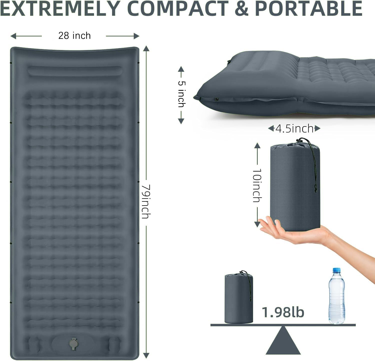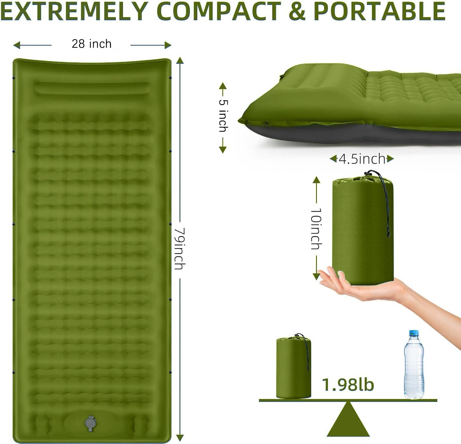 - 5" Extra Thick & 800lbs Support - 79x28 inch oversized camping mattress with egg-shaped cells eliminates back pain. 5x thicker than standard pads for ultimate support on rocky terrain.